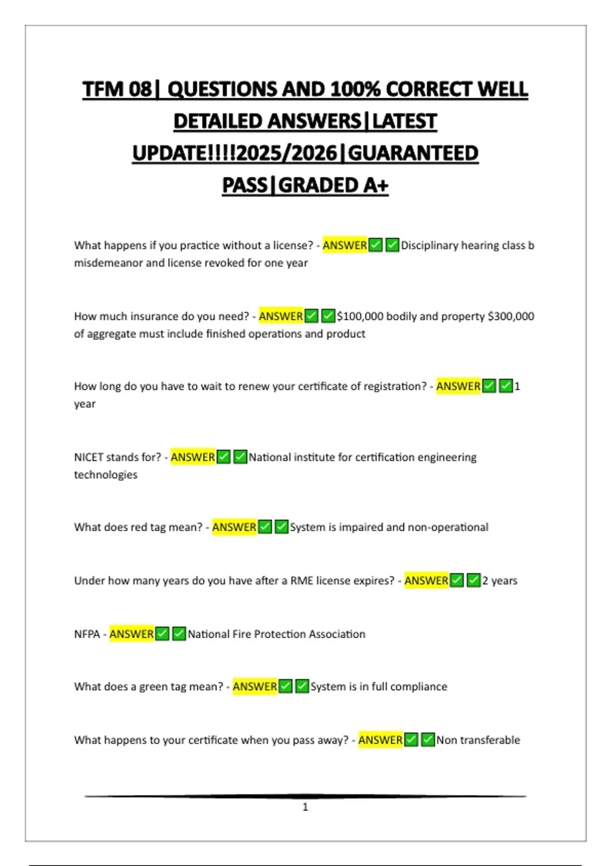 NICET stands for? - ANSWER National institute for certification engineering