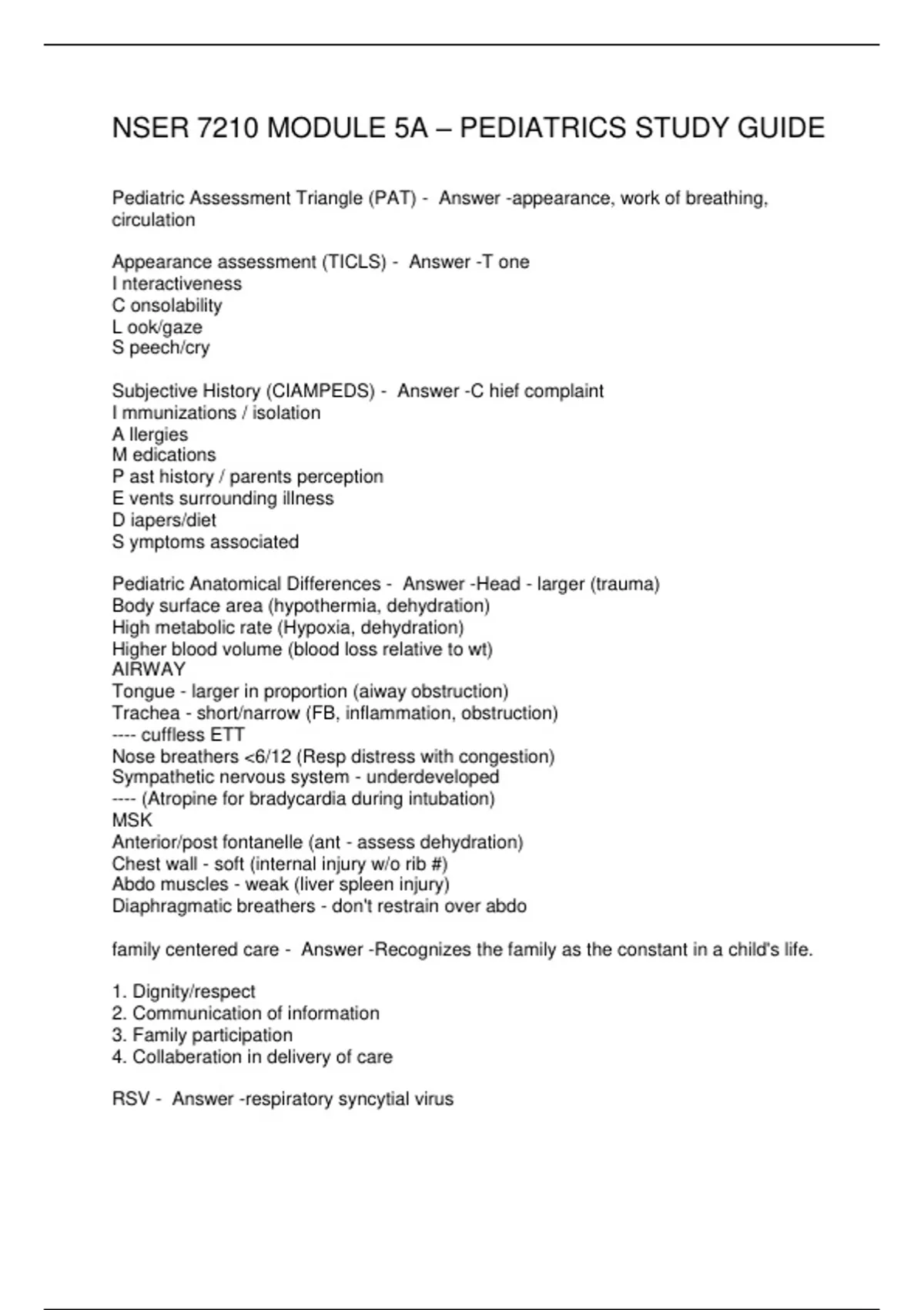 NSER 7210 MODULE 5A – PEDIATRICS STUDY GUIDE
