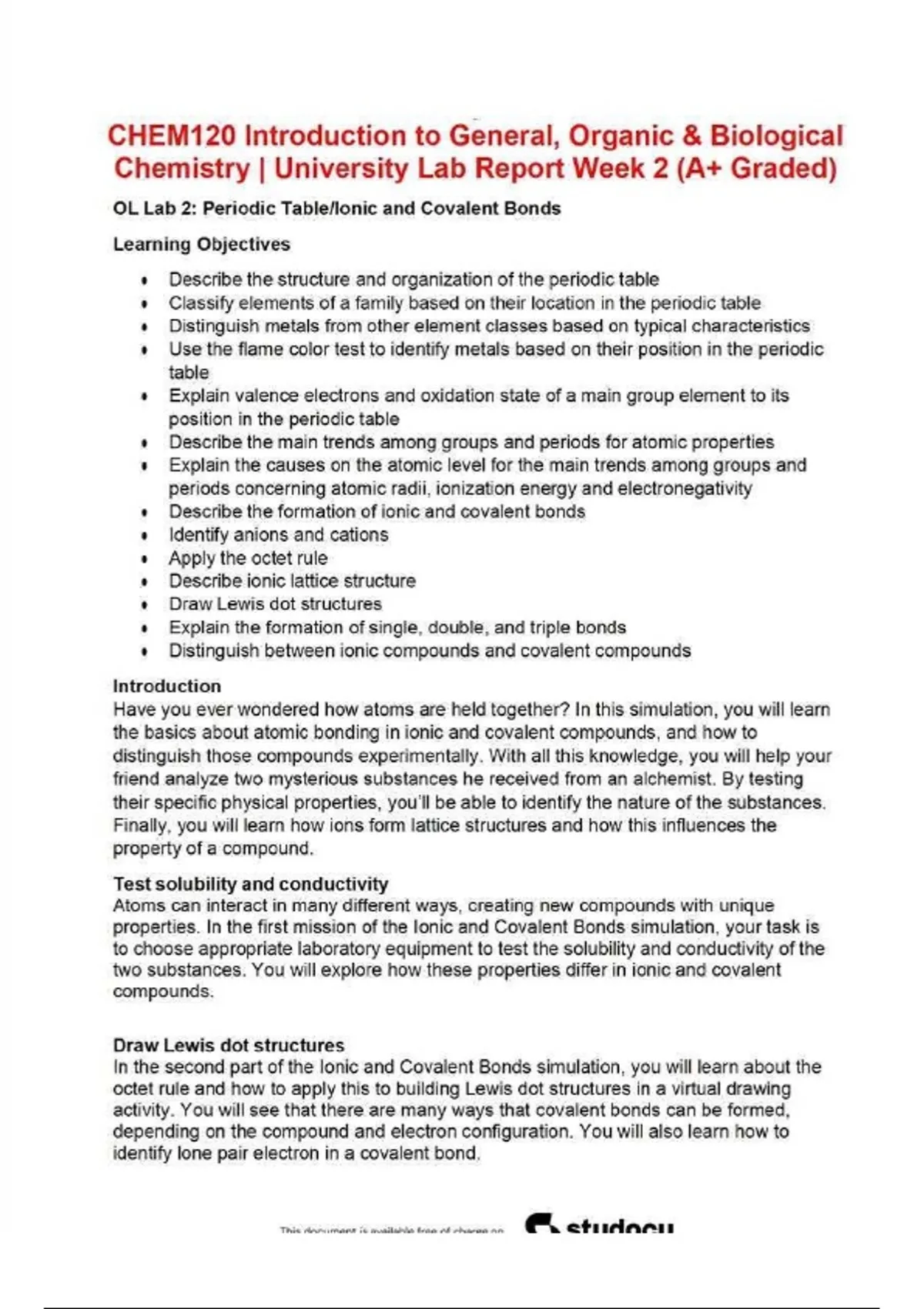 CHEM 120 – Week 2: Structure of the Periodic Table (University Lab Module)
