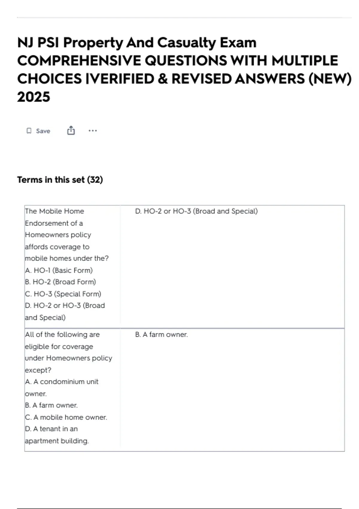 The Mobile Home D. HO-2 or HO-3 (Broad and Special)
