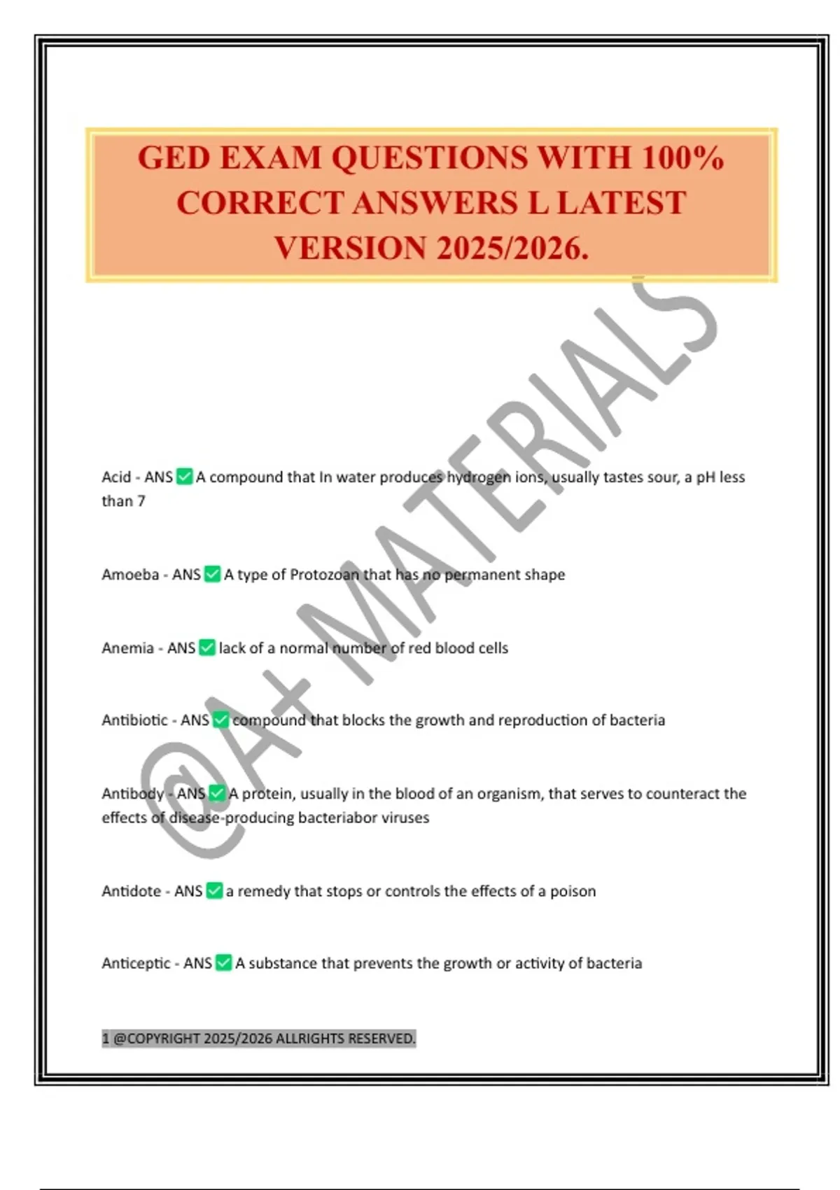 GED EXAM QUESTIONS WITH 100% CORRECT ANSWERS L LATEST VERSION 2025/2026.