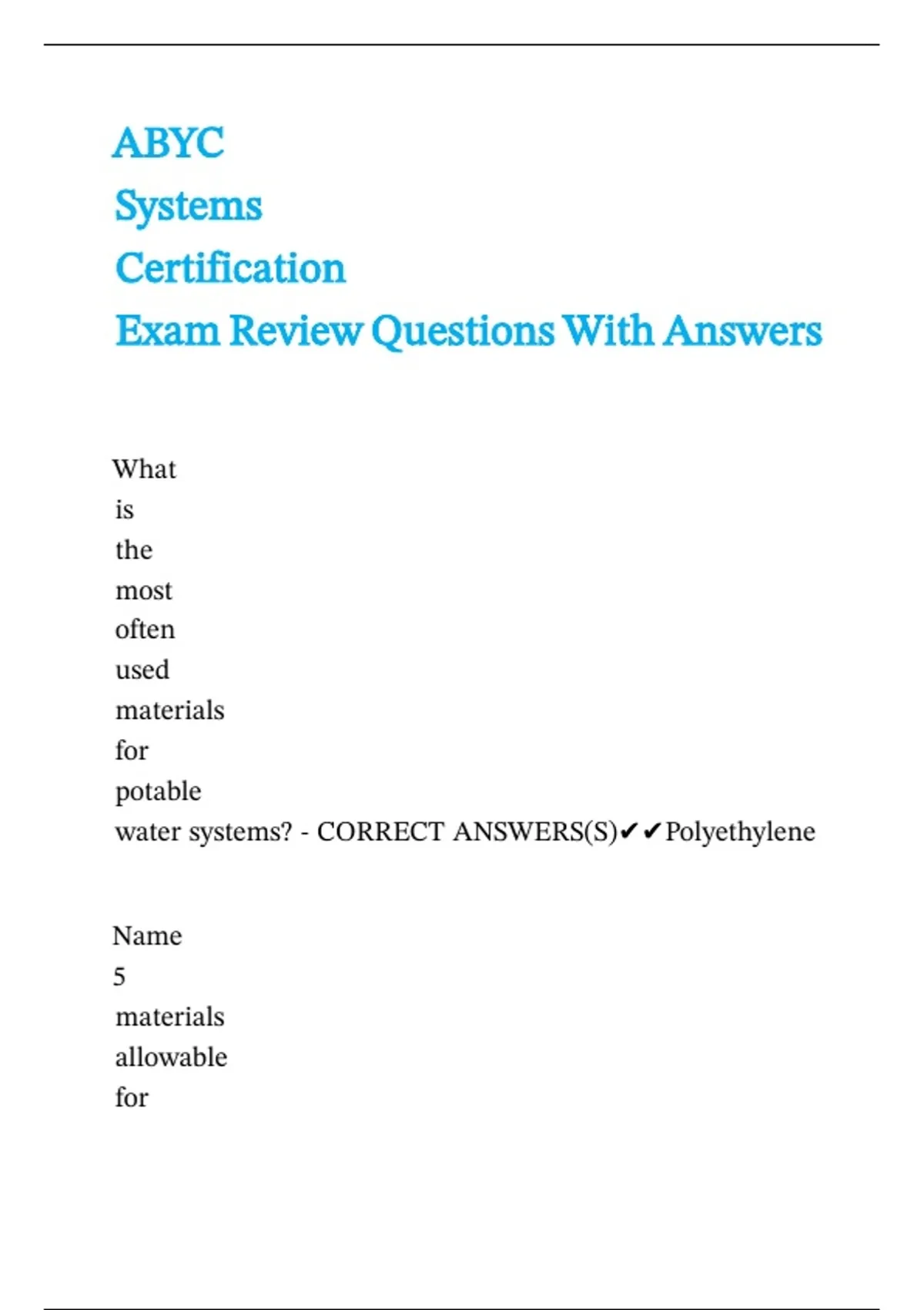 water systems? - CORRECT ANSWERS(S)✔✔Polyethylene