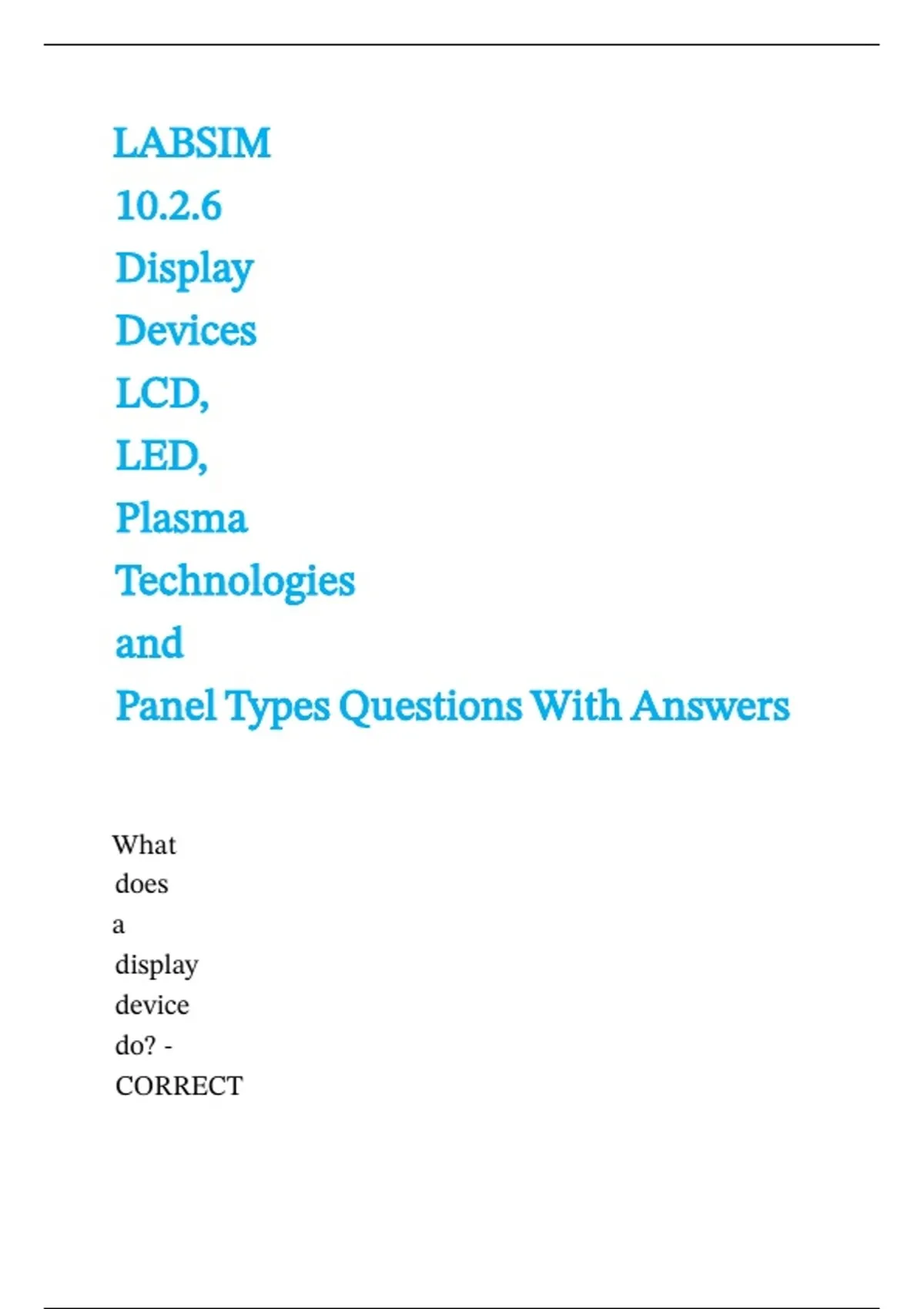 LABSIM 10.2.6 Display Devices LCD, LED, Plasma Technologies and Panel Types Questions With Answers.