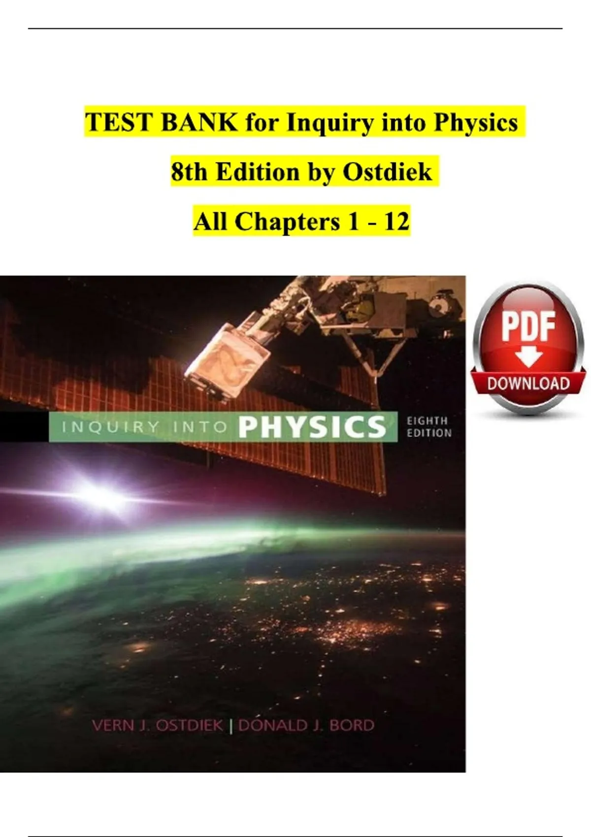 TEST BANK For Inquiry into Physics 8th Edition by Ostdiek, Verified Chapters 1 - 12, Complete Newest Version