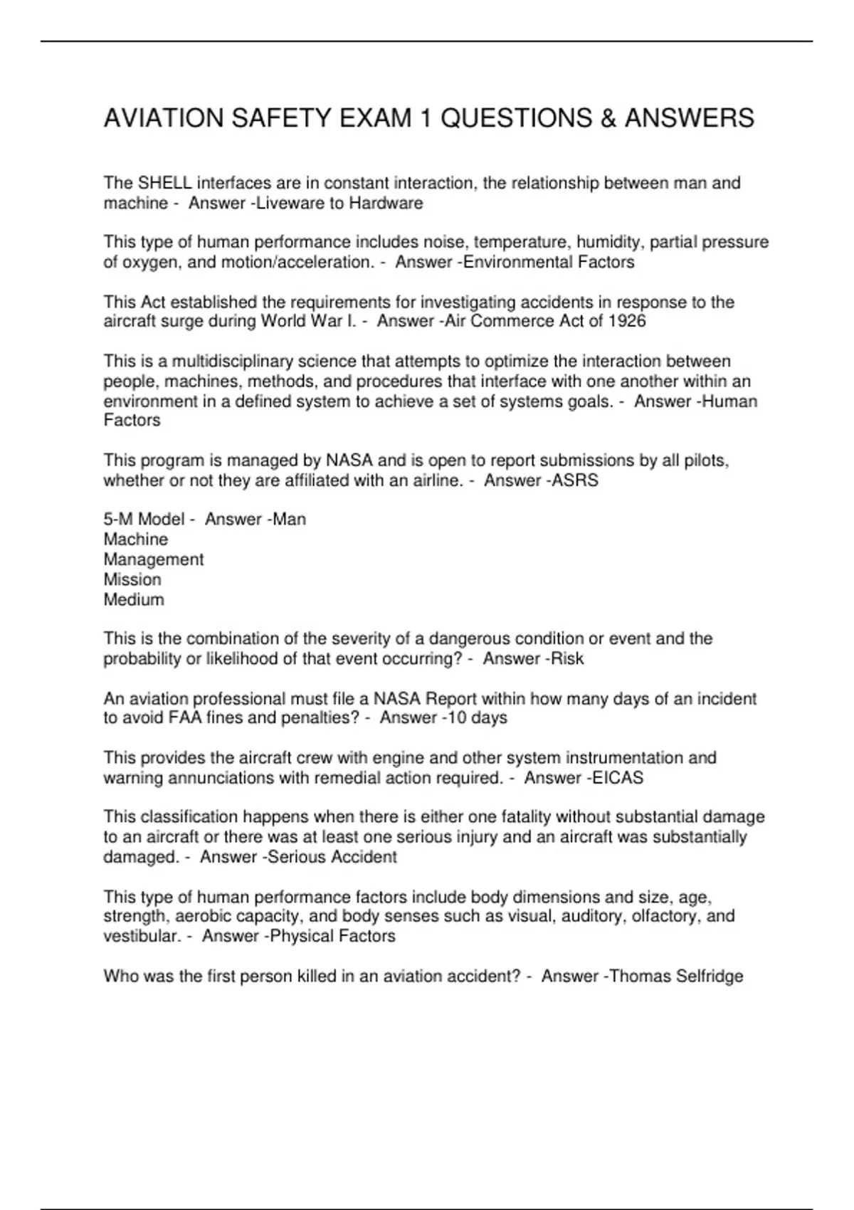 AVIATION SAFETY EXAM 1 QUESTIONS & ANSWERS