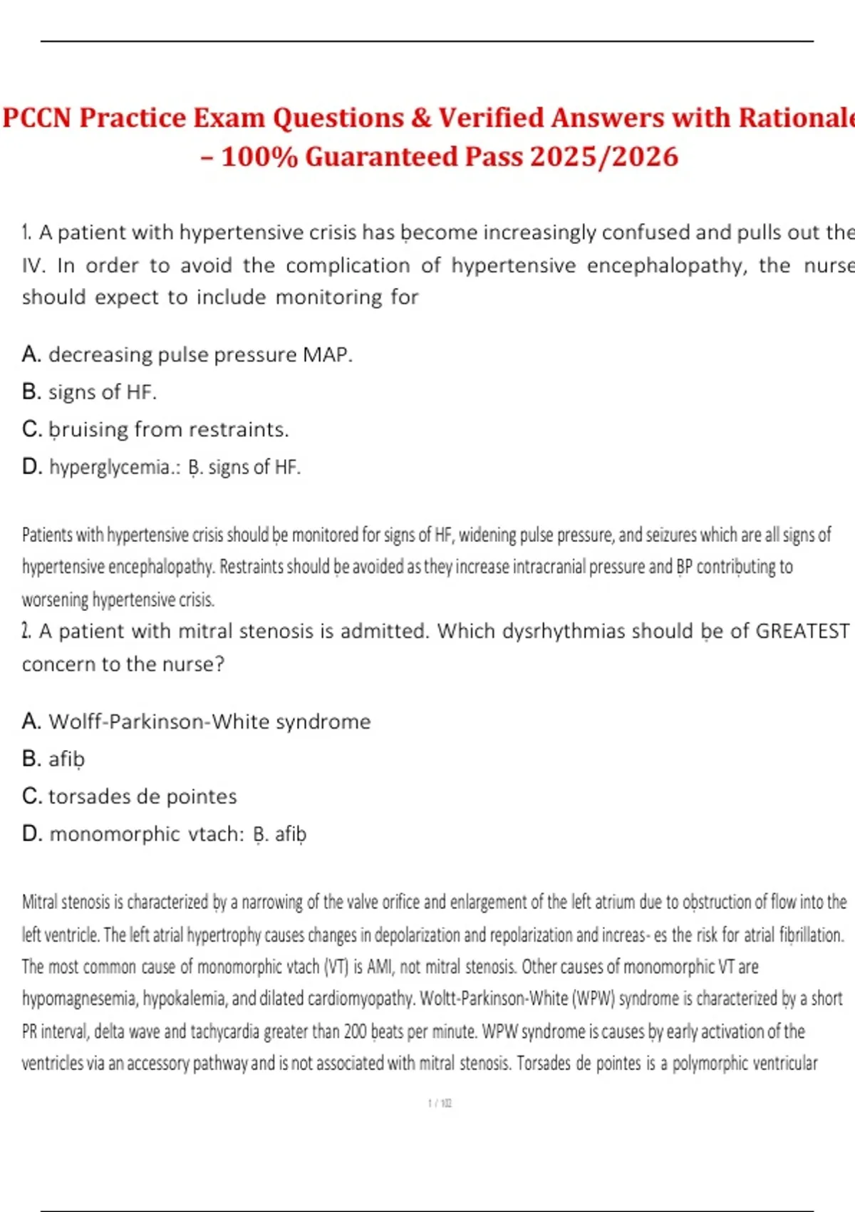 2. A patient with mitral stenosis is admitted. Which dysrhythmias should ḅe of GREATEST