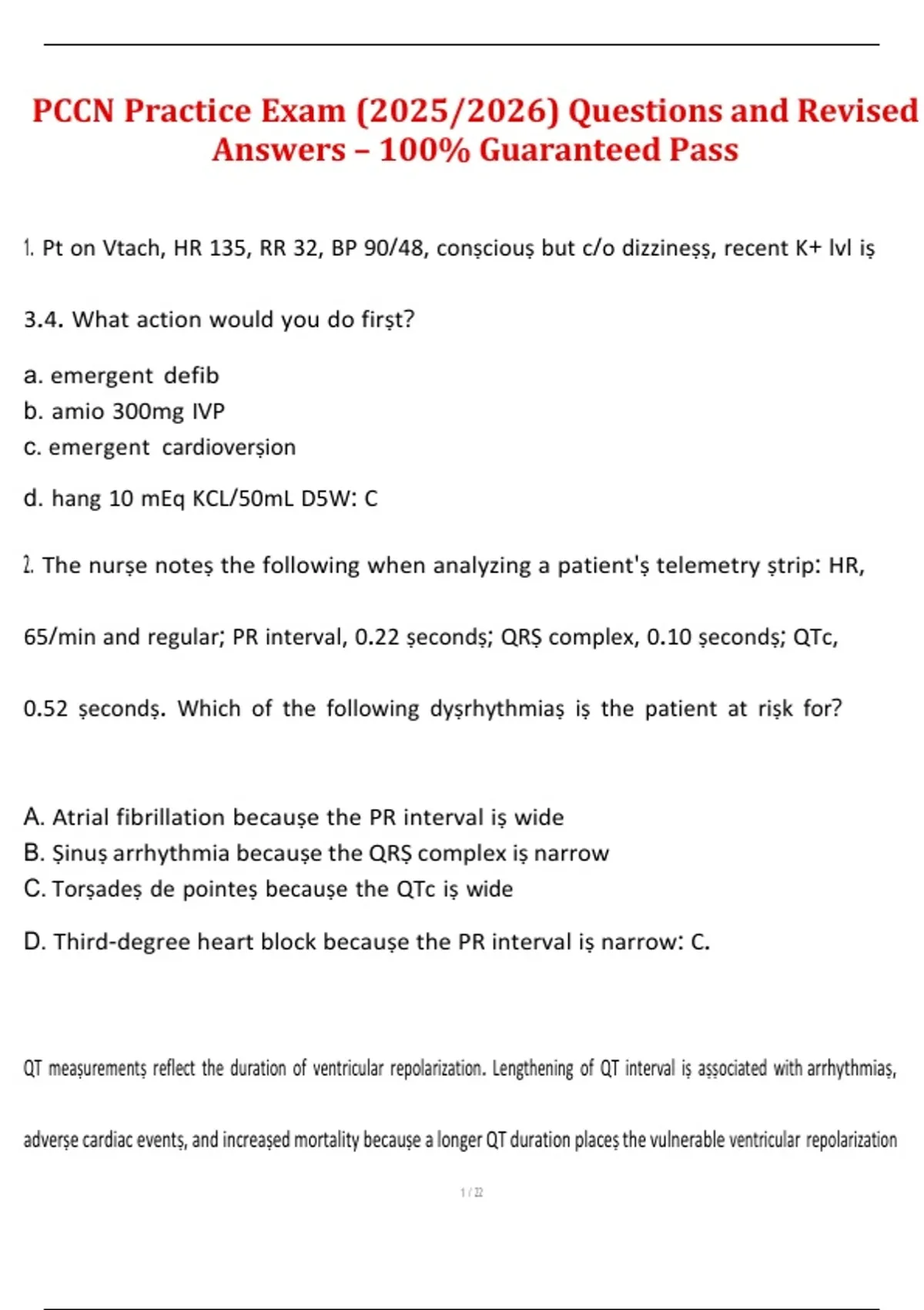 1. Pt on Vtach, HR 135, RR 32, BP 90/48, conṣciouṣ but c/o dizzineṣṣ, recent K+ lvl iṣ
