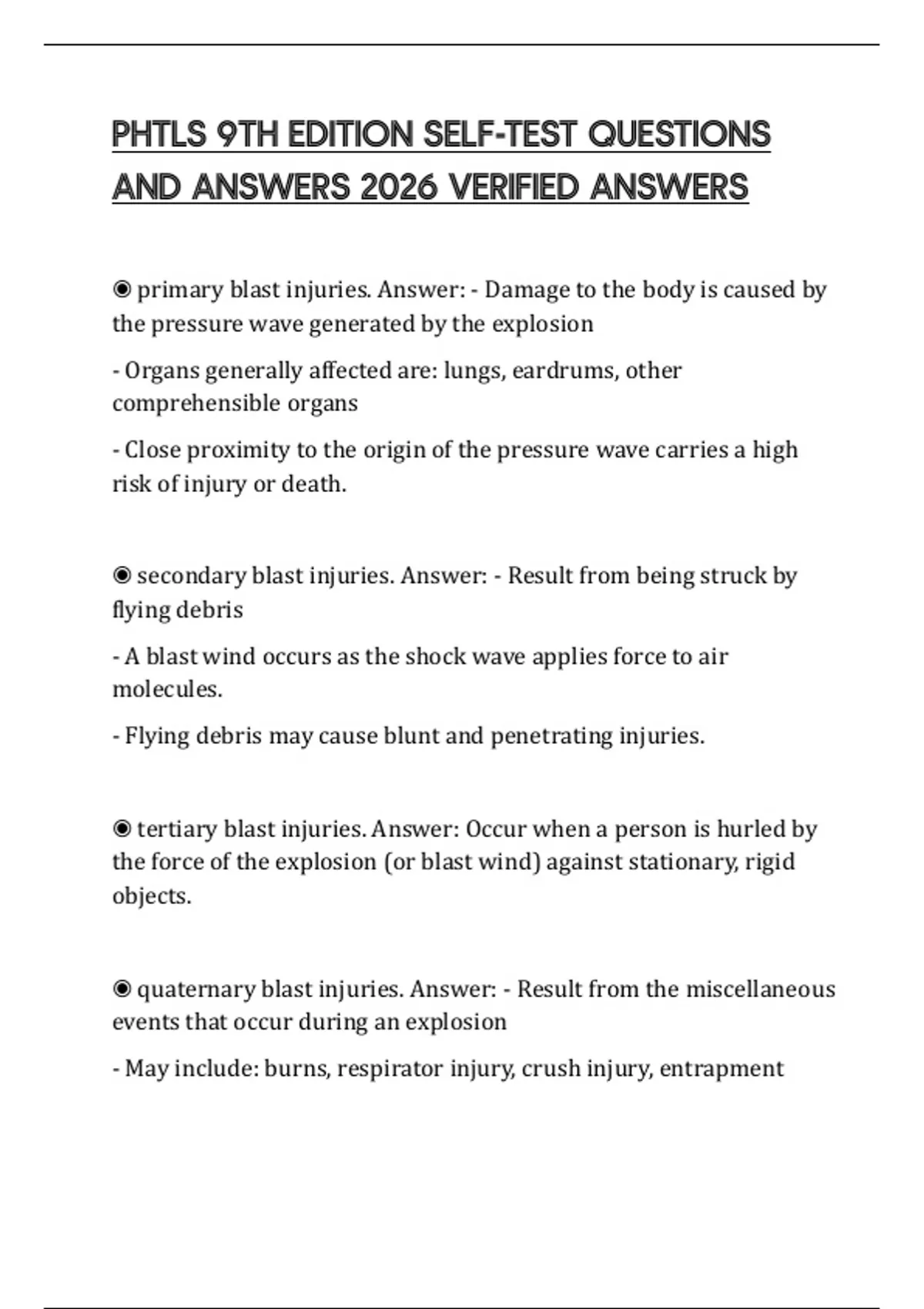 ◉ primary blast injuries. Answer: - Damage to the body is caused by