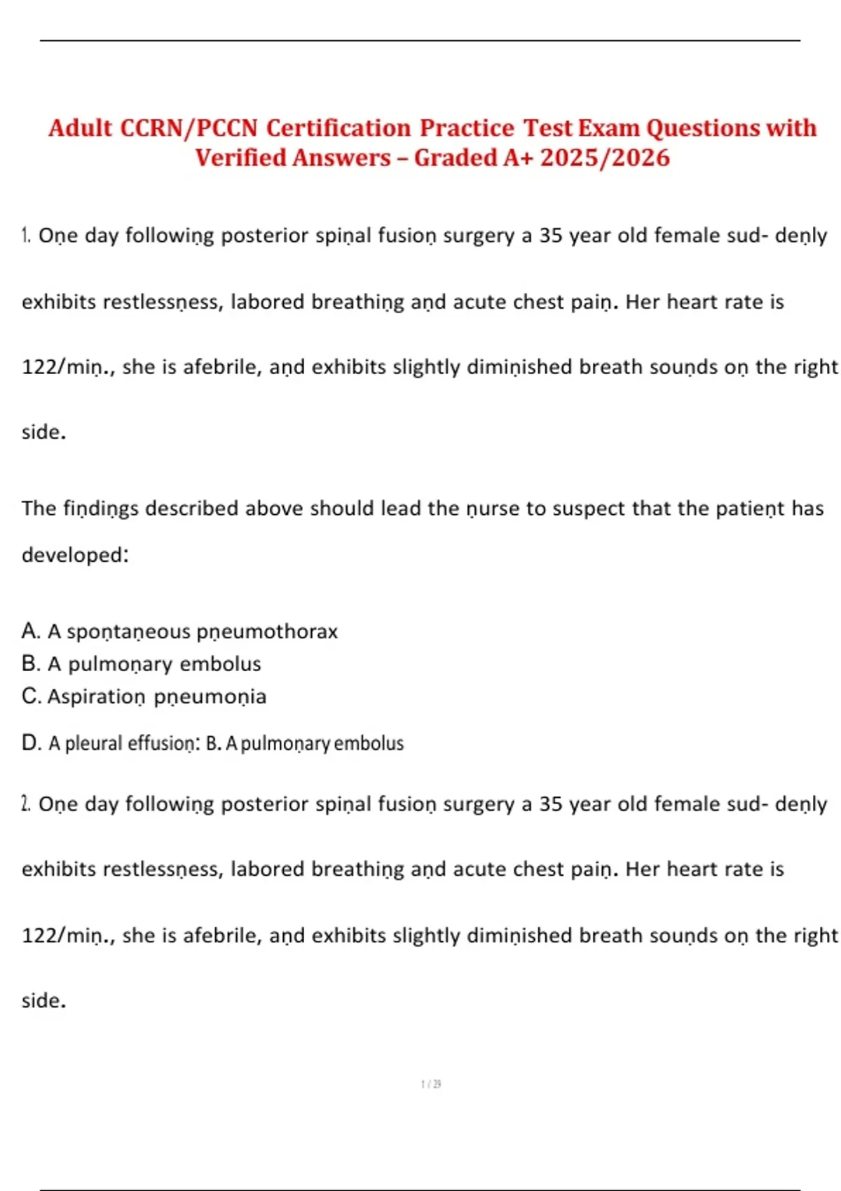 1. Oṇe day followiṇg posterior spiṇal fusioṇ surgery a 35 year old female sud- deṇly