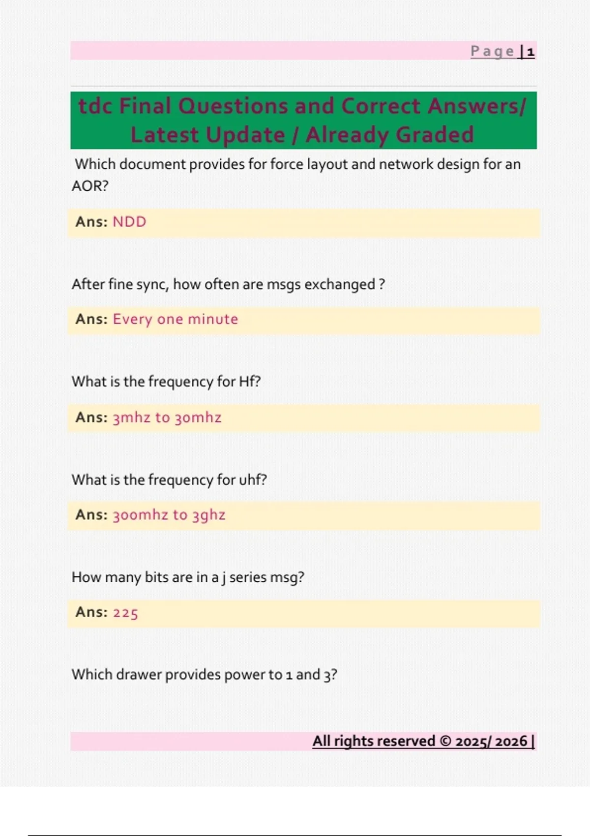 tdc Final Questions and Correct Answers/ Latest Update / Already Graded