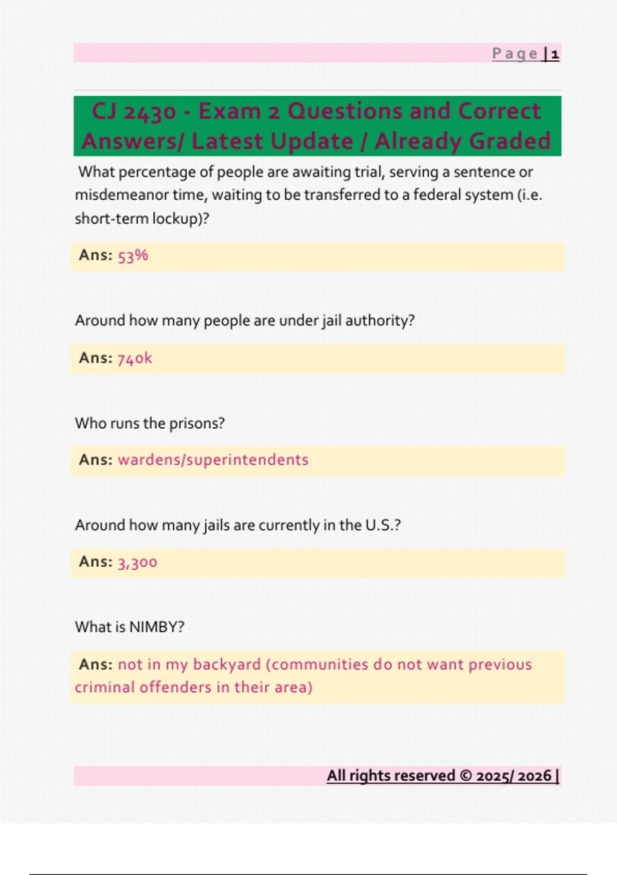 CJ 2430 - Exam 2 Questions and Correct Answers/ Latest Update / Already Graded