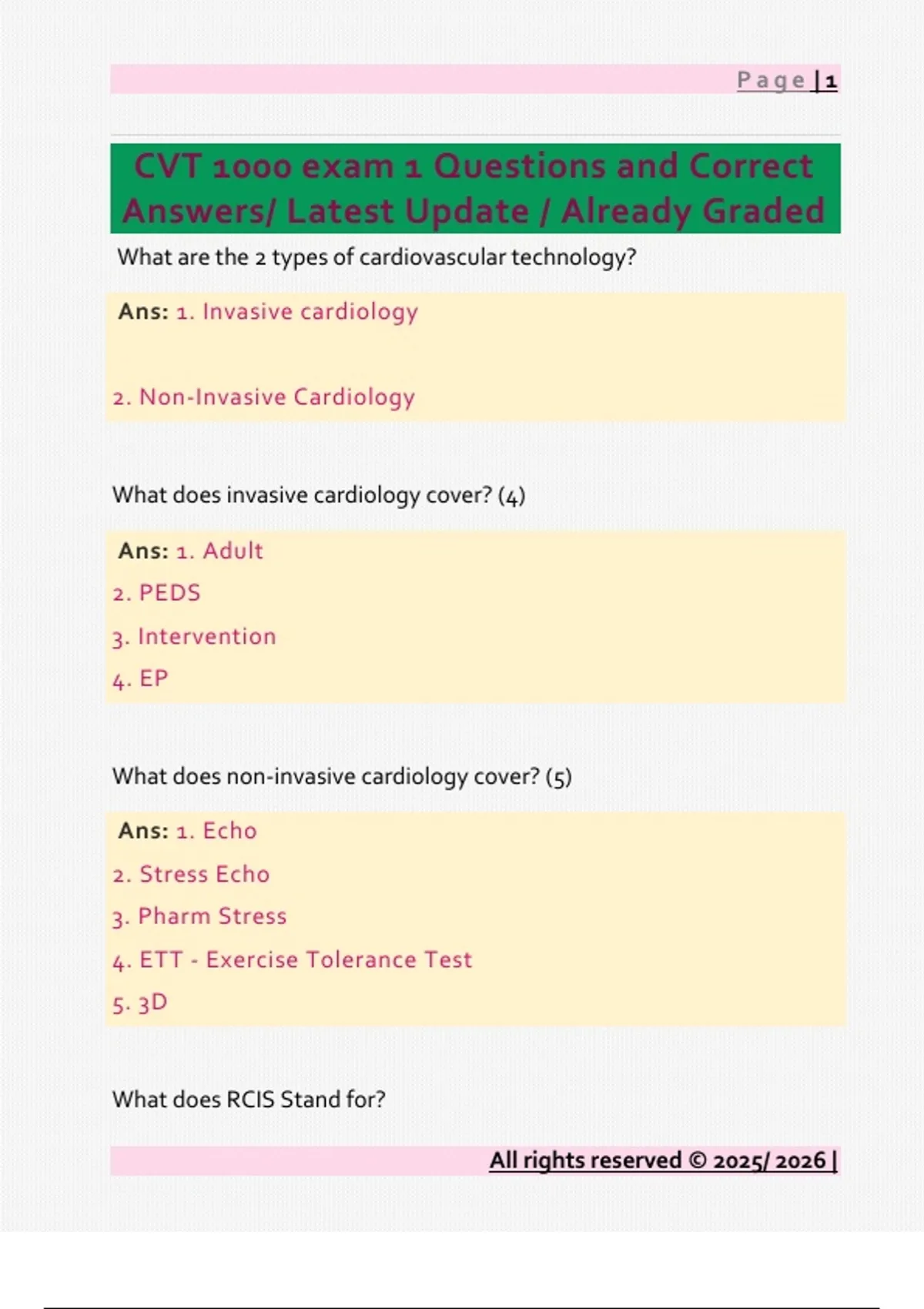 CVT 1000 exam 1 Questions and Correct Answers/ Latest Update / Already Graded