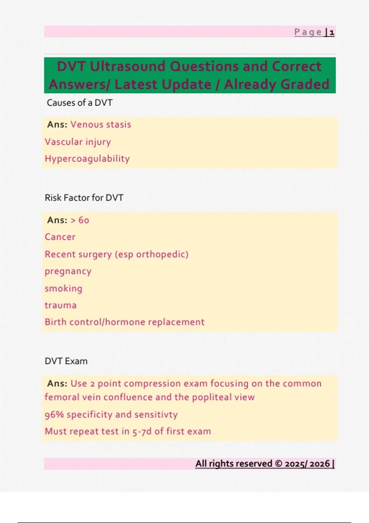 DVT Ultrasound Questions and Correct Answers/ Latest Update / Already Graded