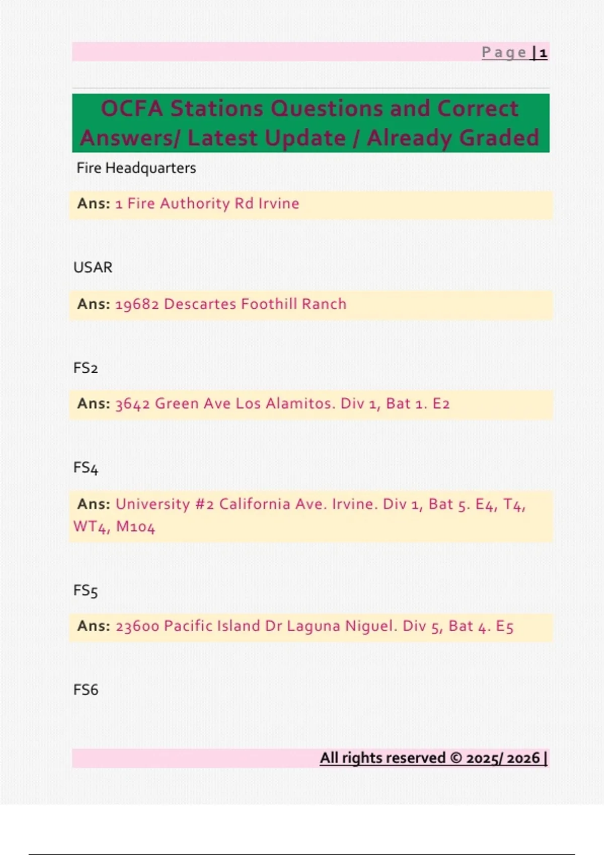 OCFA Stations Questions and Correct