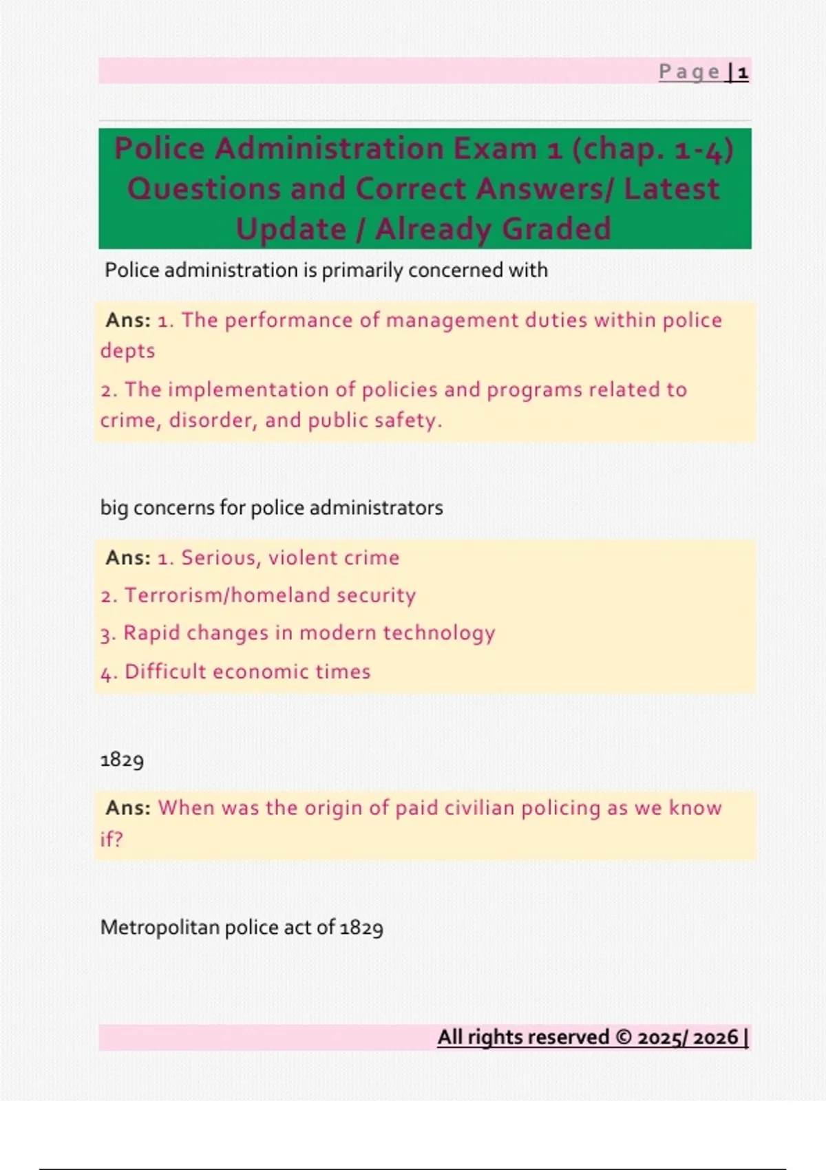 Police Administration Exam 1 (chap. 1-4)
