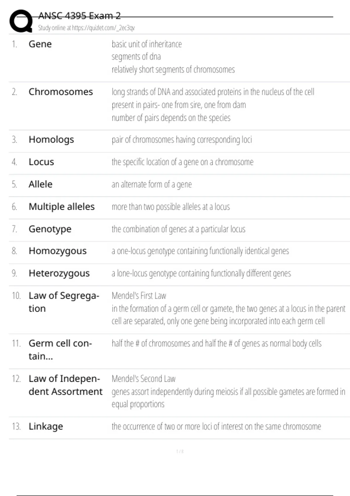 11. Germ cell con- half the # of chromosomes and half the # of genes as normal body cells