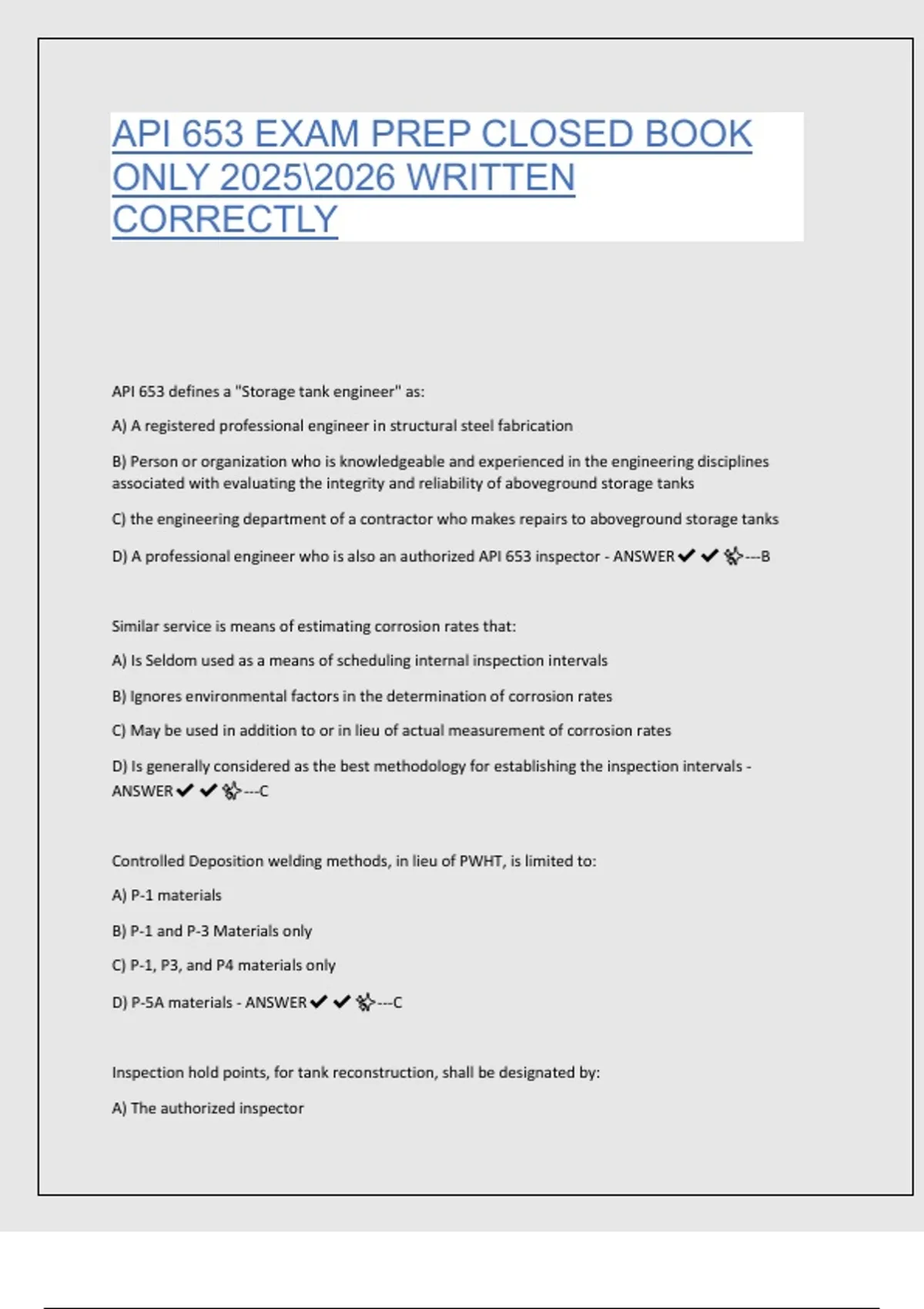 D) A professional engineer who is also an authorized API 653 inspector - ANSWER✔✔✨---B