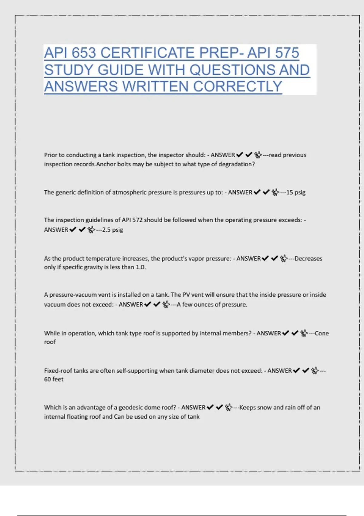 Prior to conducting a tank inspection, the inspector should: - ANSWER✔✔✨---read previous