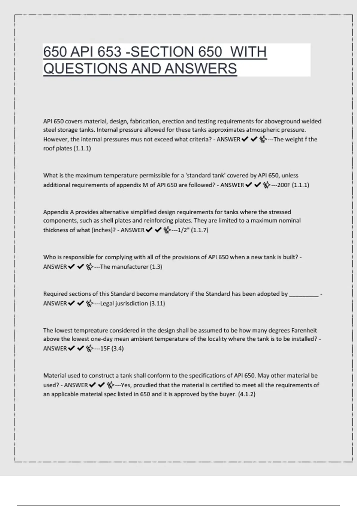 used? - ANSWER✔✔✨---Yes, provdied that the material is certified to meet all the requirements of