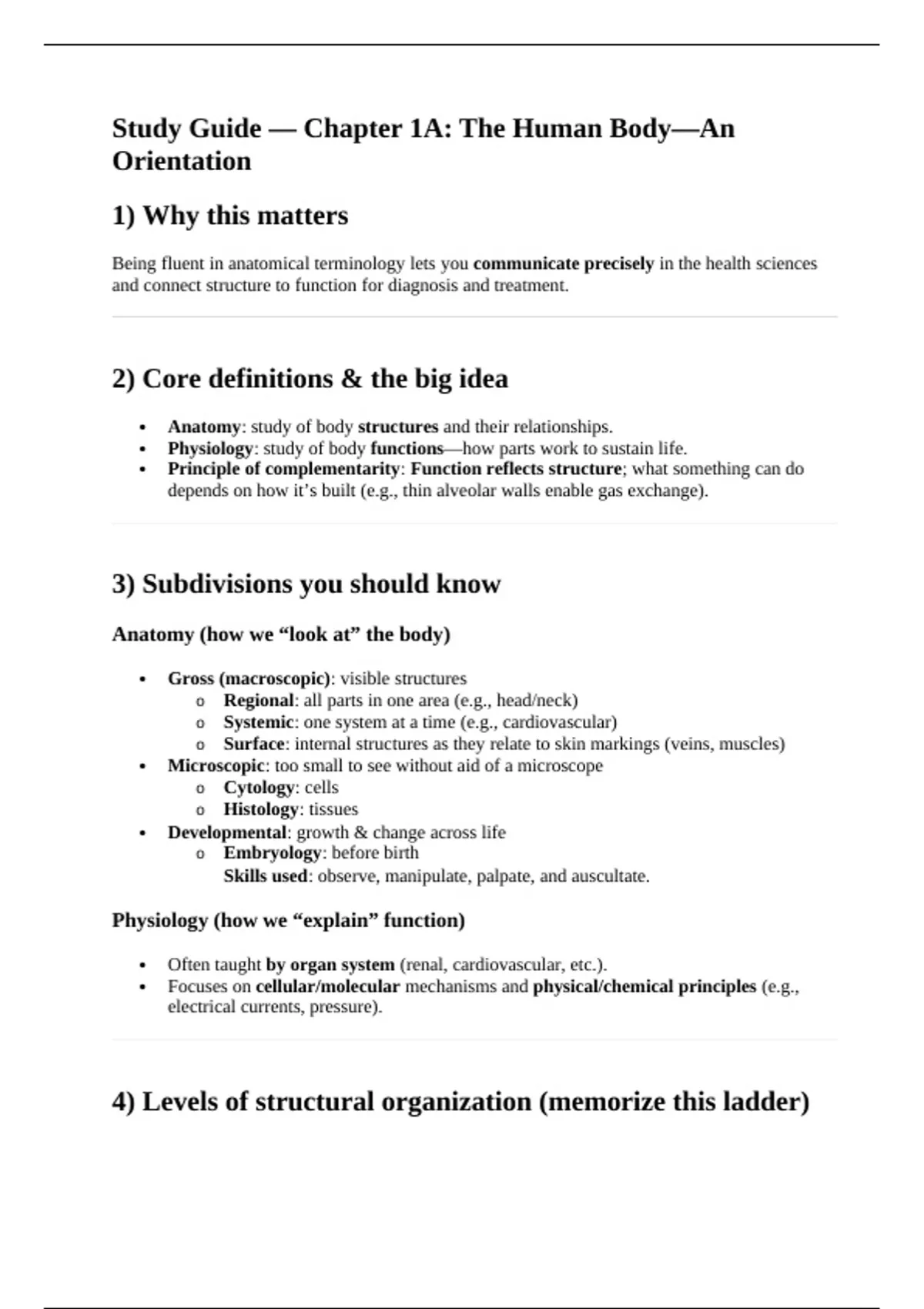 Study Guide — Chapter 1A: The Human Body—An