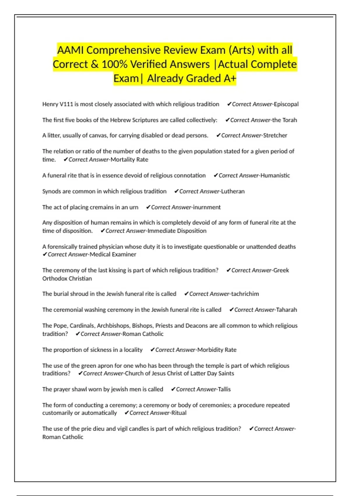 AAMI Comprehensive Review Exam (Arts) with all