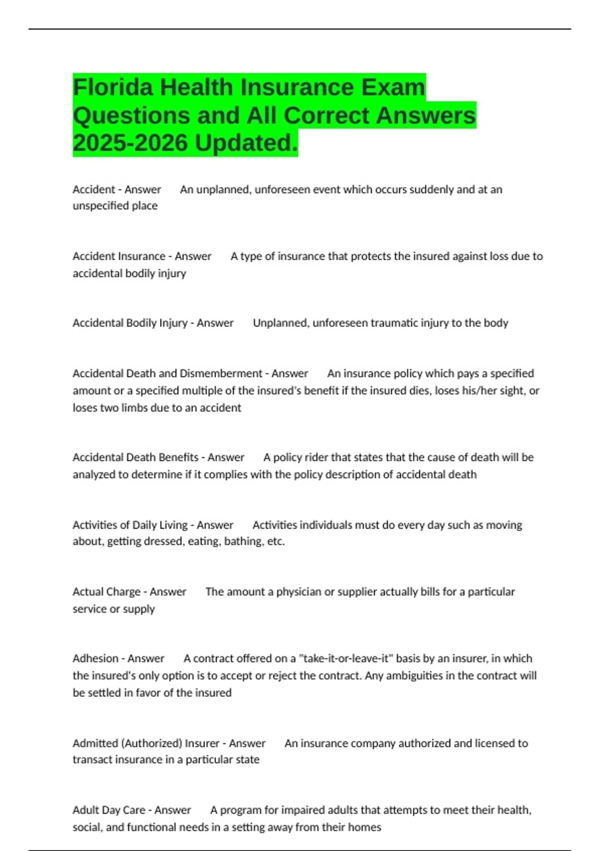 Accident Insurance - Answer A type of insurance that protects the insured against loss due to