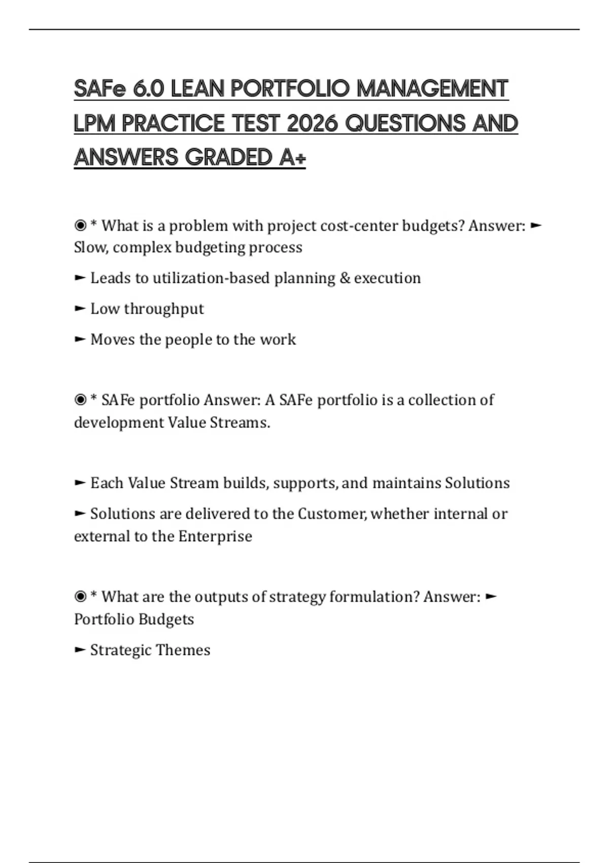 ◉ * SAFe portfolio Answer: A SAFe portfolio is a collection of