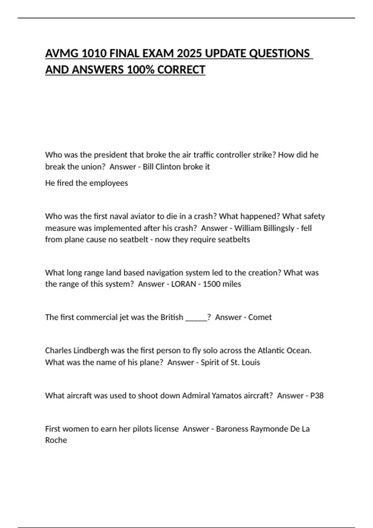 AVMG 1010 FINAL EXAM 2025 UPDATE QUESTIONS AND ANSWERS 100% CORRECT