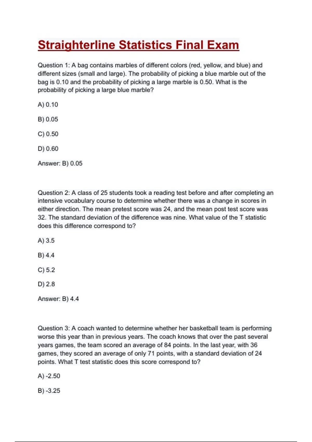 Straighterline Statistics Final Exam Questions with correct Answers (A+ GRADED 100% VERIFIED)| 2025/2026