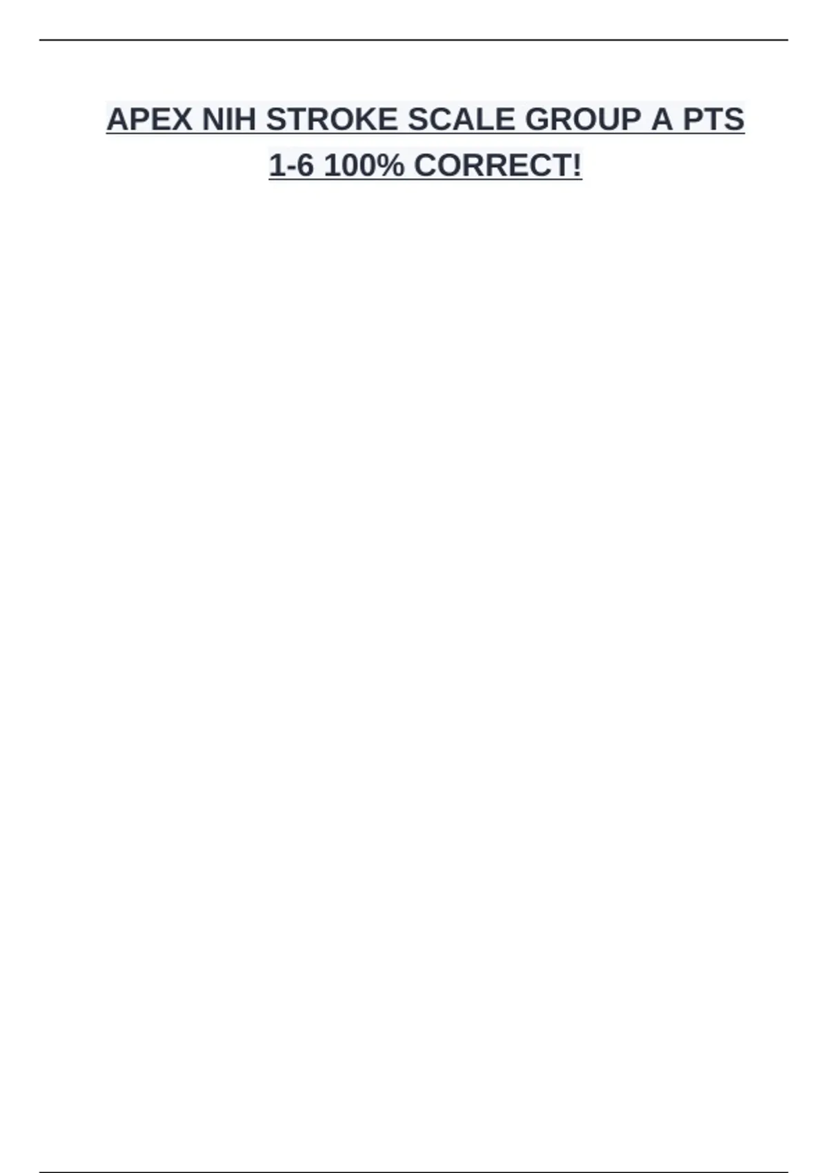 APEX NIH STROKE SCALE GROUP A PATIENT FINAL EXAM BUNDLE(COMPLETE PACKAGE DEAL)QUESTIONS AND ANSWERS 100% CORRECT