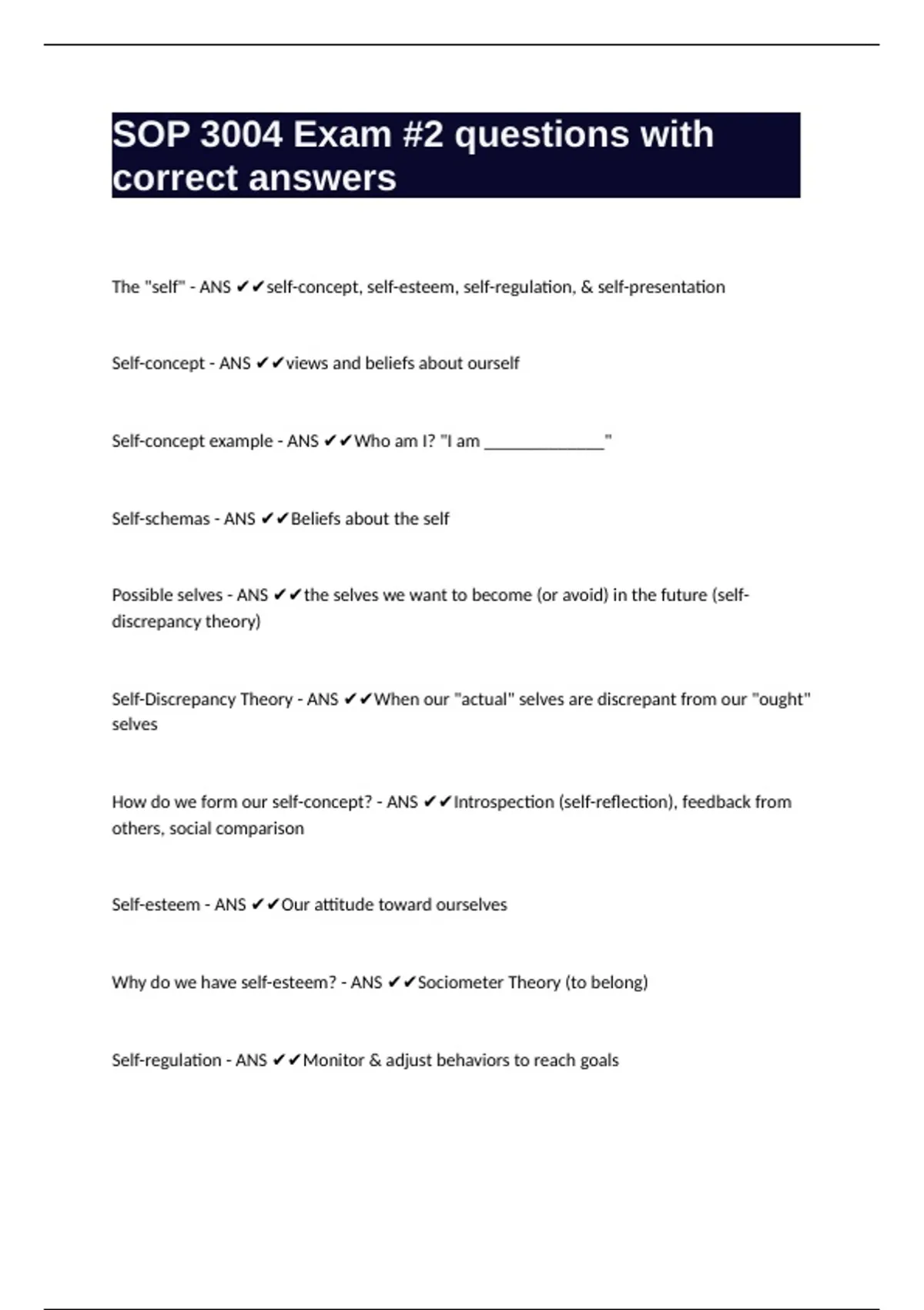 Self-esteem - ANS ✔✔Our attitude toward ourselves