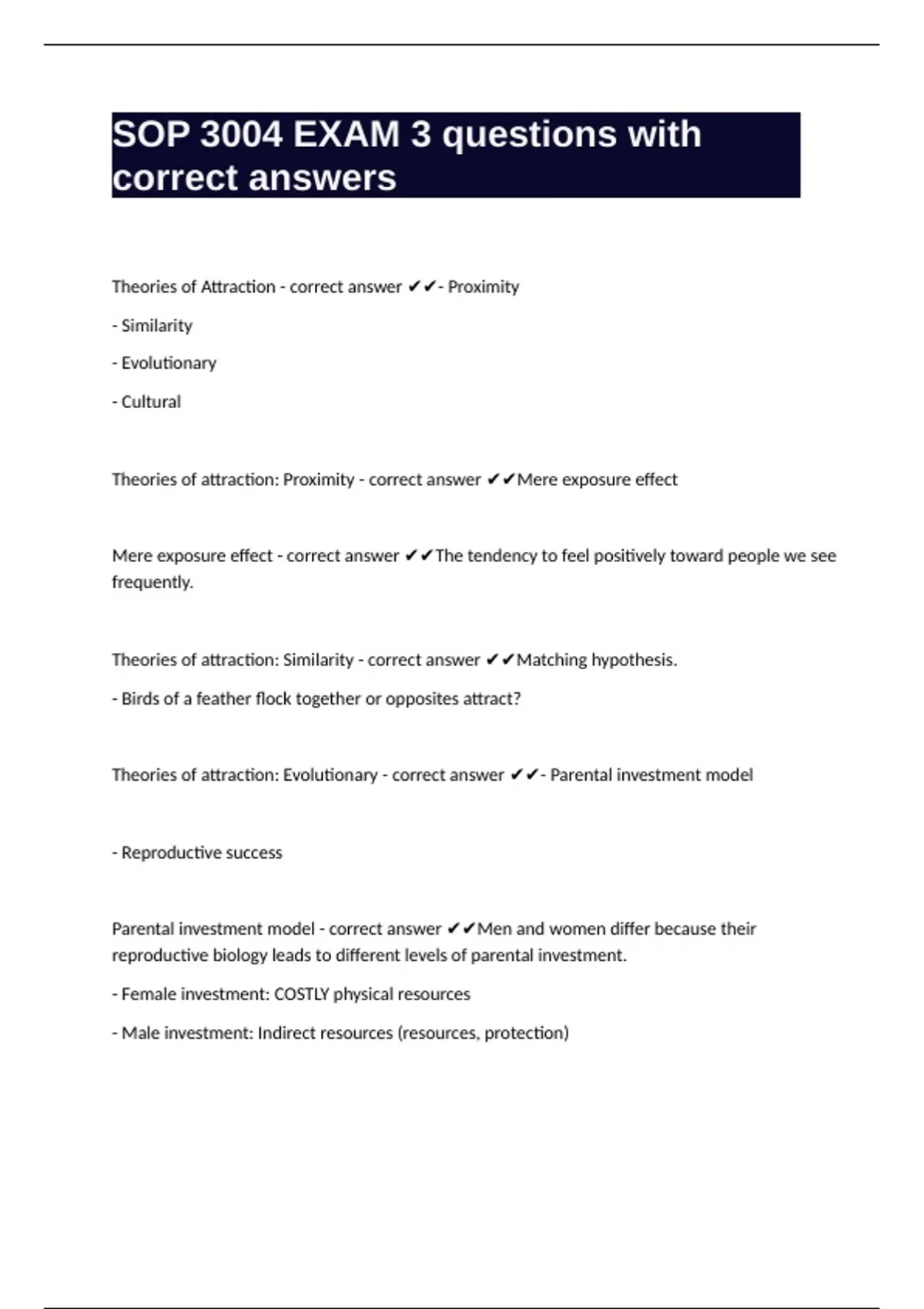 Theories of attraction: Evolutionary - correct answer ✔✔- Parental investment model