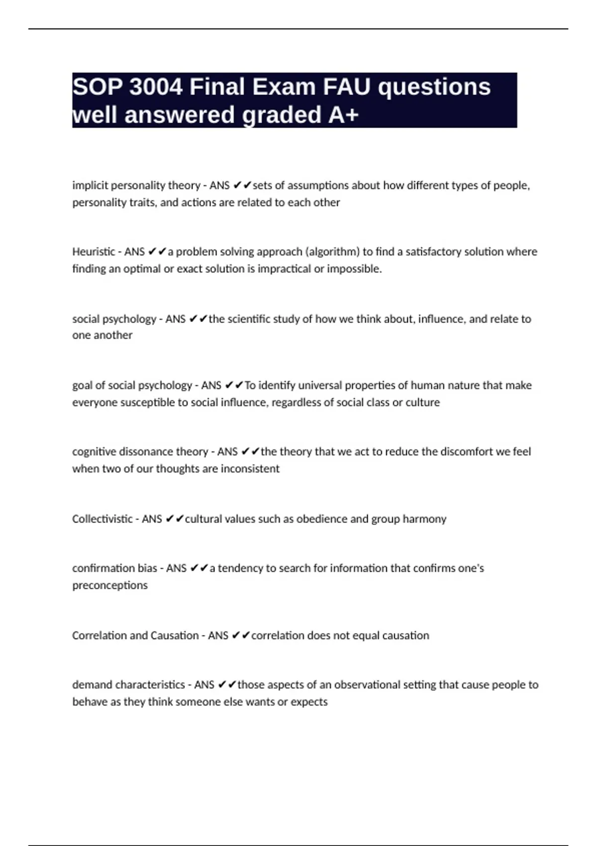 SOP 3004 Final Exam FAU questions well answered graded A+
