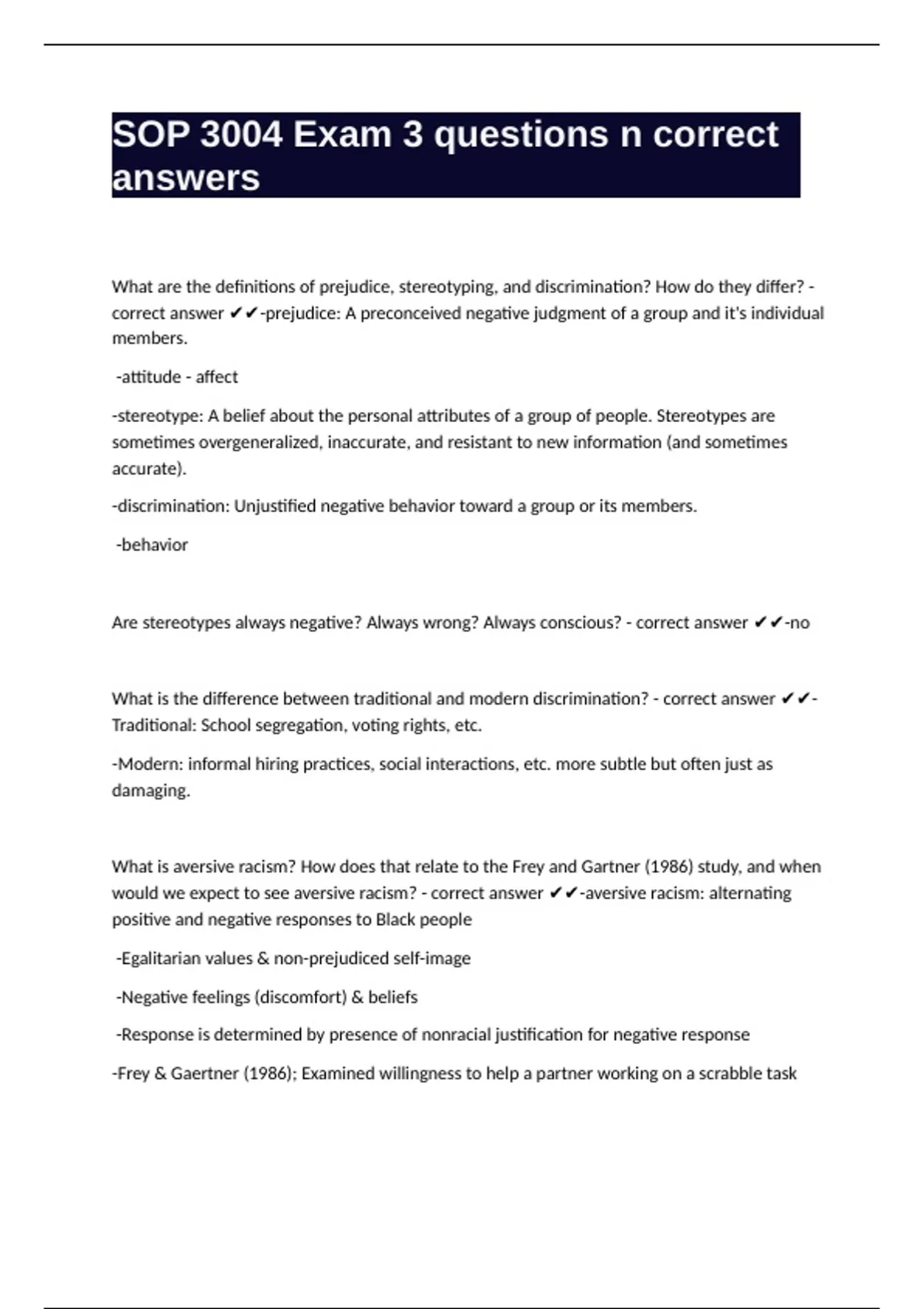 correct answer ✔✔-Social Inequalities: Unequal Status and Prejudice