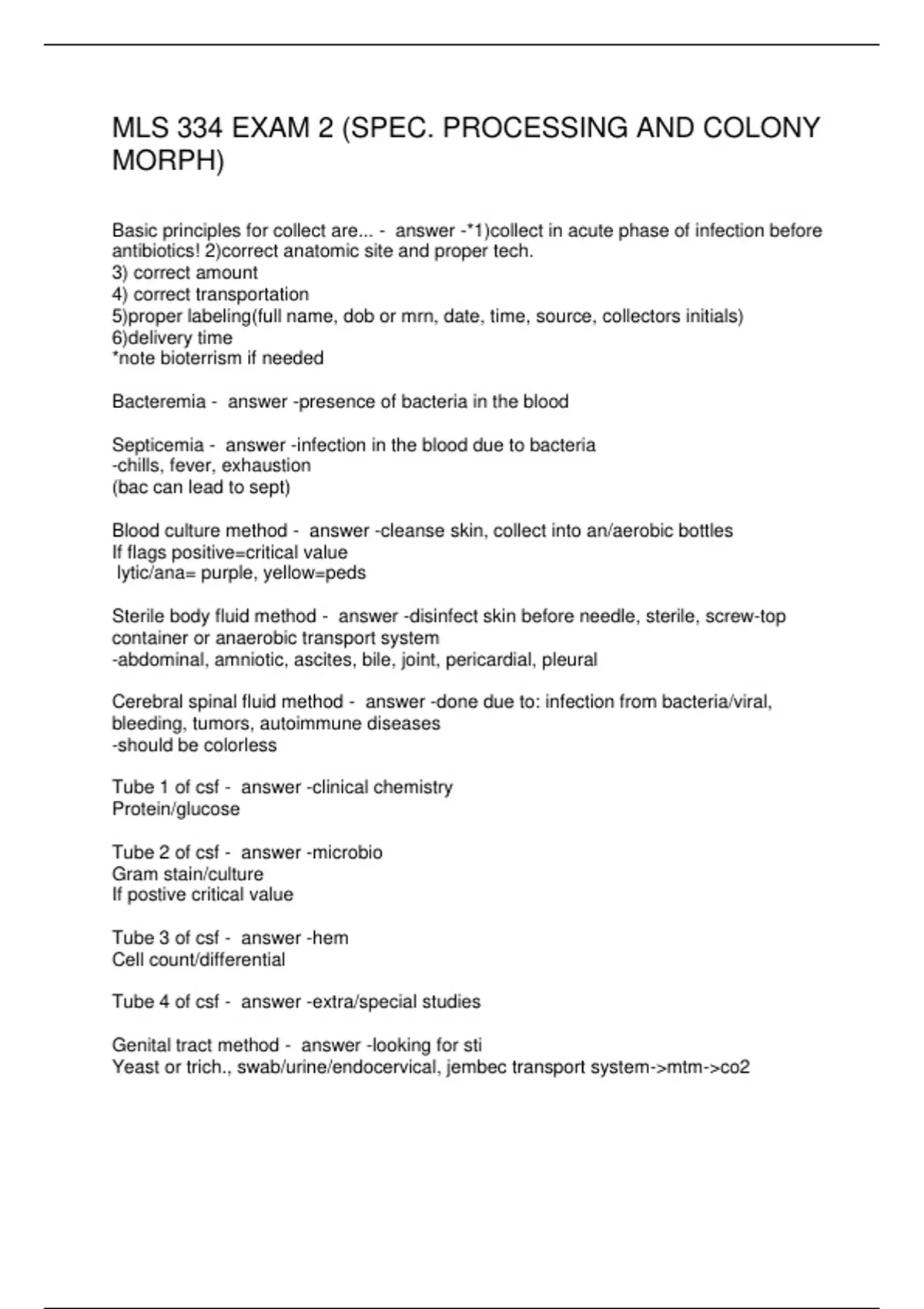 MLS 334 EXAM 2 (SPEC. PROCESSING AND COLONY