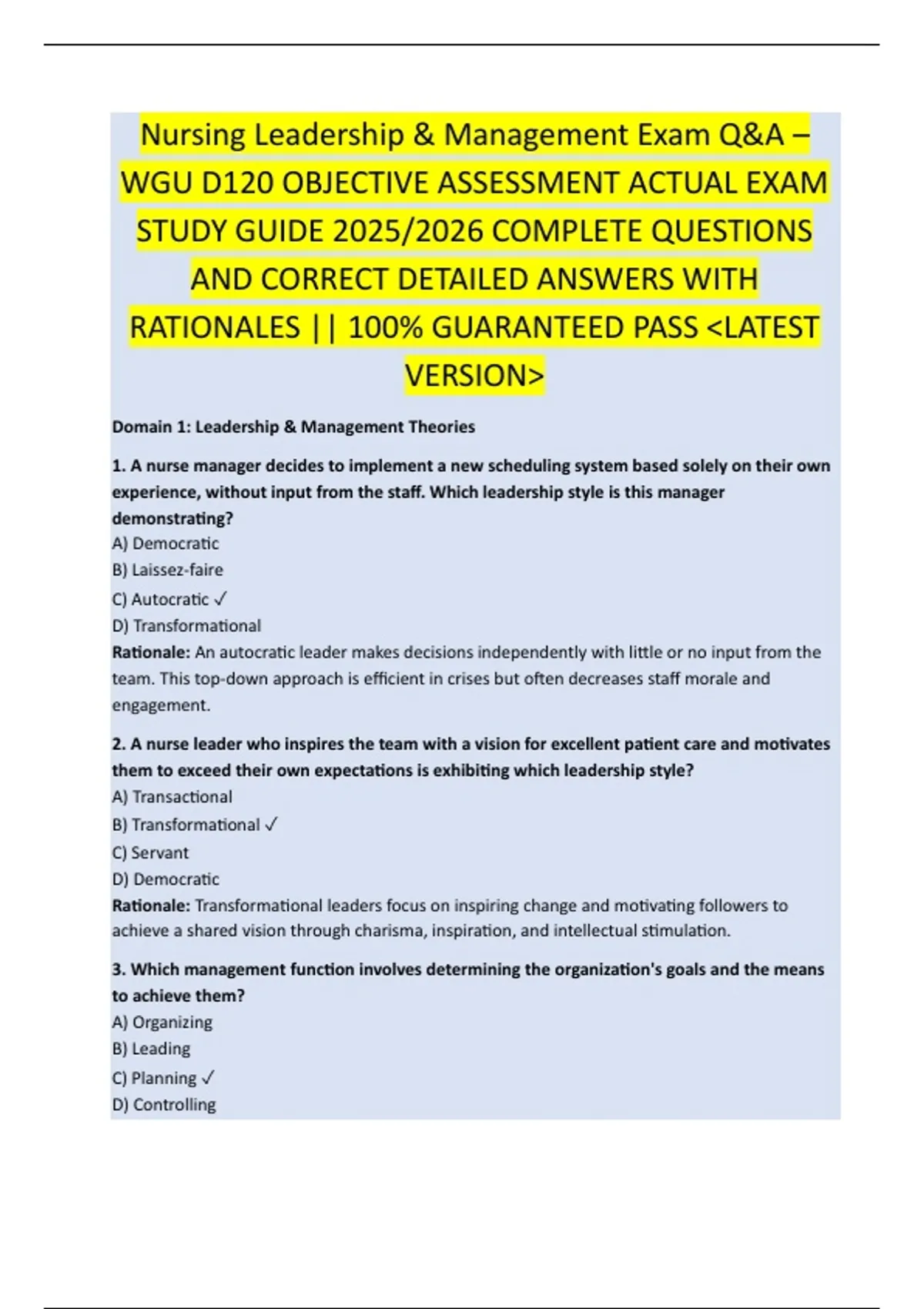 WGU D120 OBJECTIVE ASSESSMENT ACTUAL EXAM