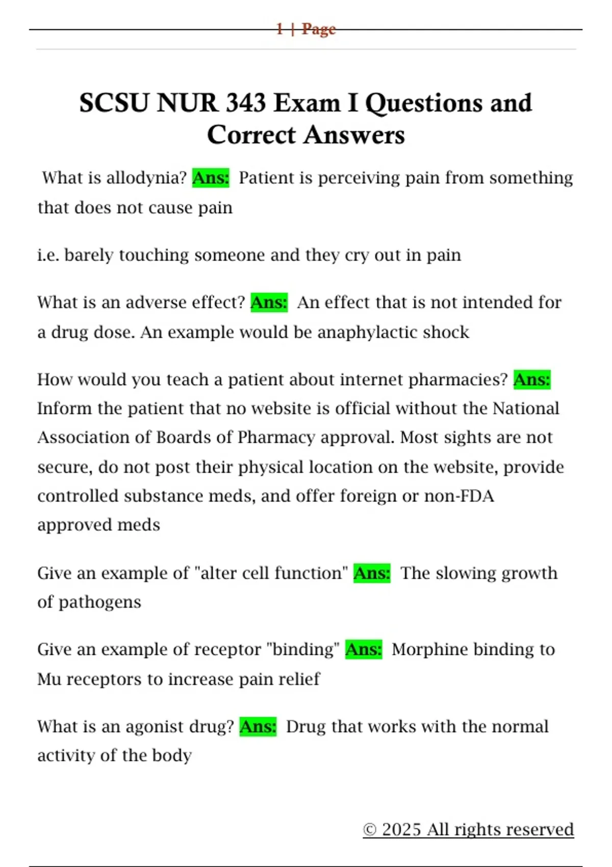 SCSU NUR 343 Exam 1 Questions and Correct Answers SCSU NUR 343 Exam 1 Questions and Correct Answers