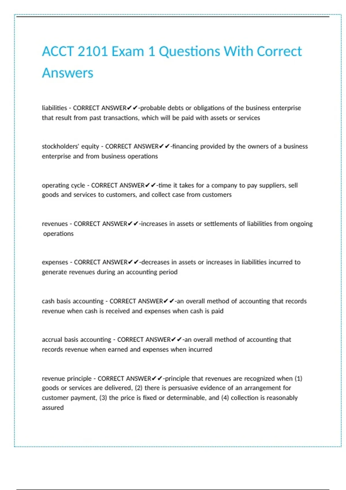 ACCT 2101 Exam 1 Questions With Correct Answers.