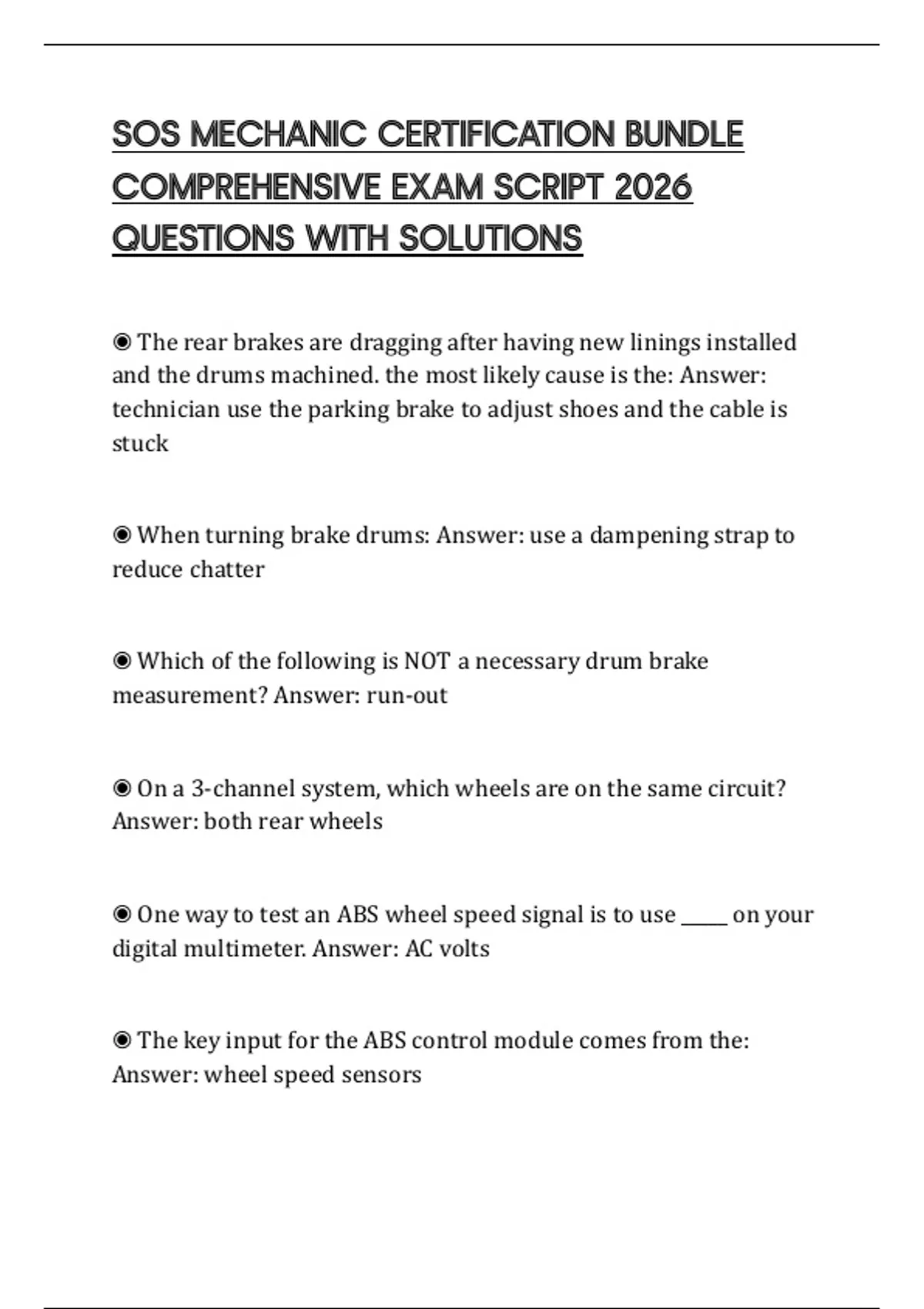 SOS MECHANIC CERTIFICATION BUNDLE COMPREHENSIVE EXAM SCRIPT 2026 QUESTIONS WITH SOLUTIONS