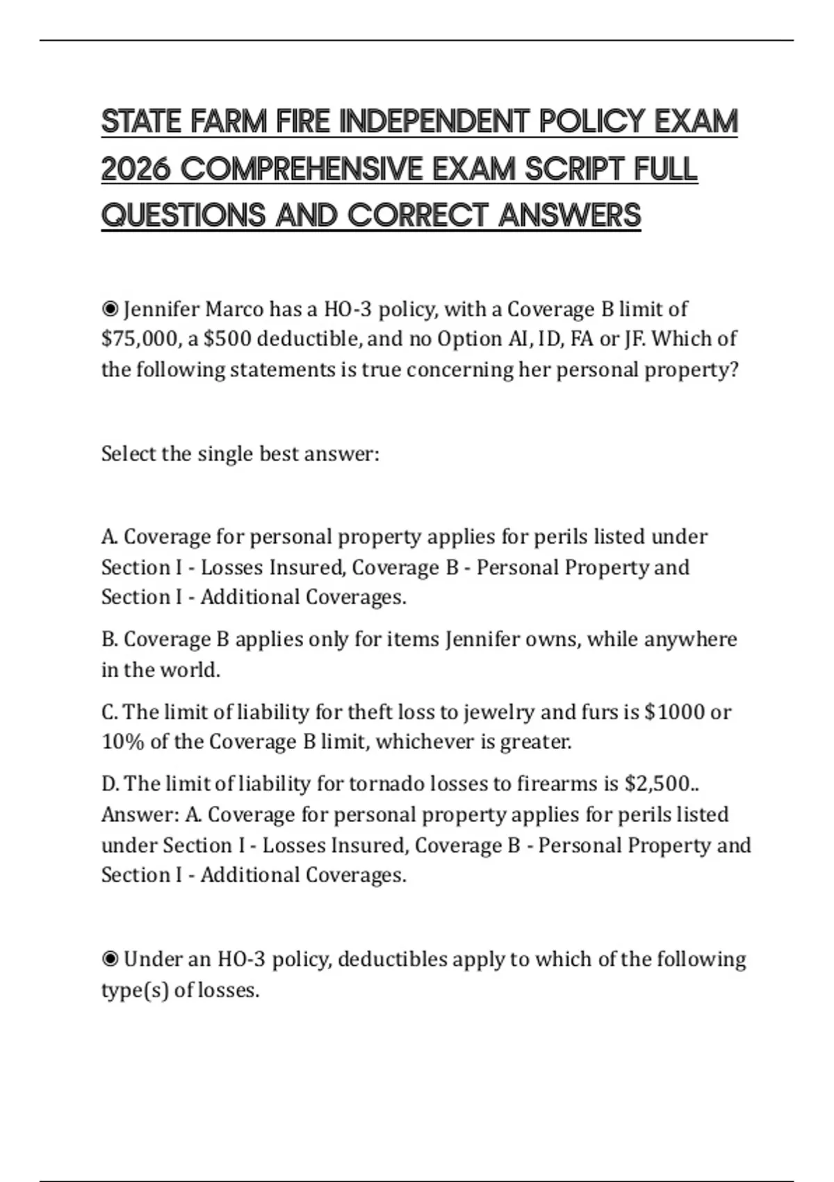 ◉ Jennifer Marco has a HO-3 policy, with a Coverage B limit of