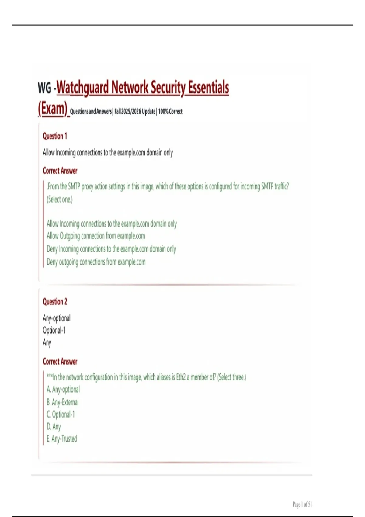 WG -Watchguard Network Security Essentials (Exam) Questions and Answers | Fall 2025/2026 Update | 100% Correct