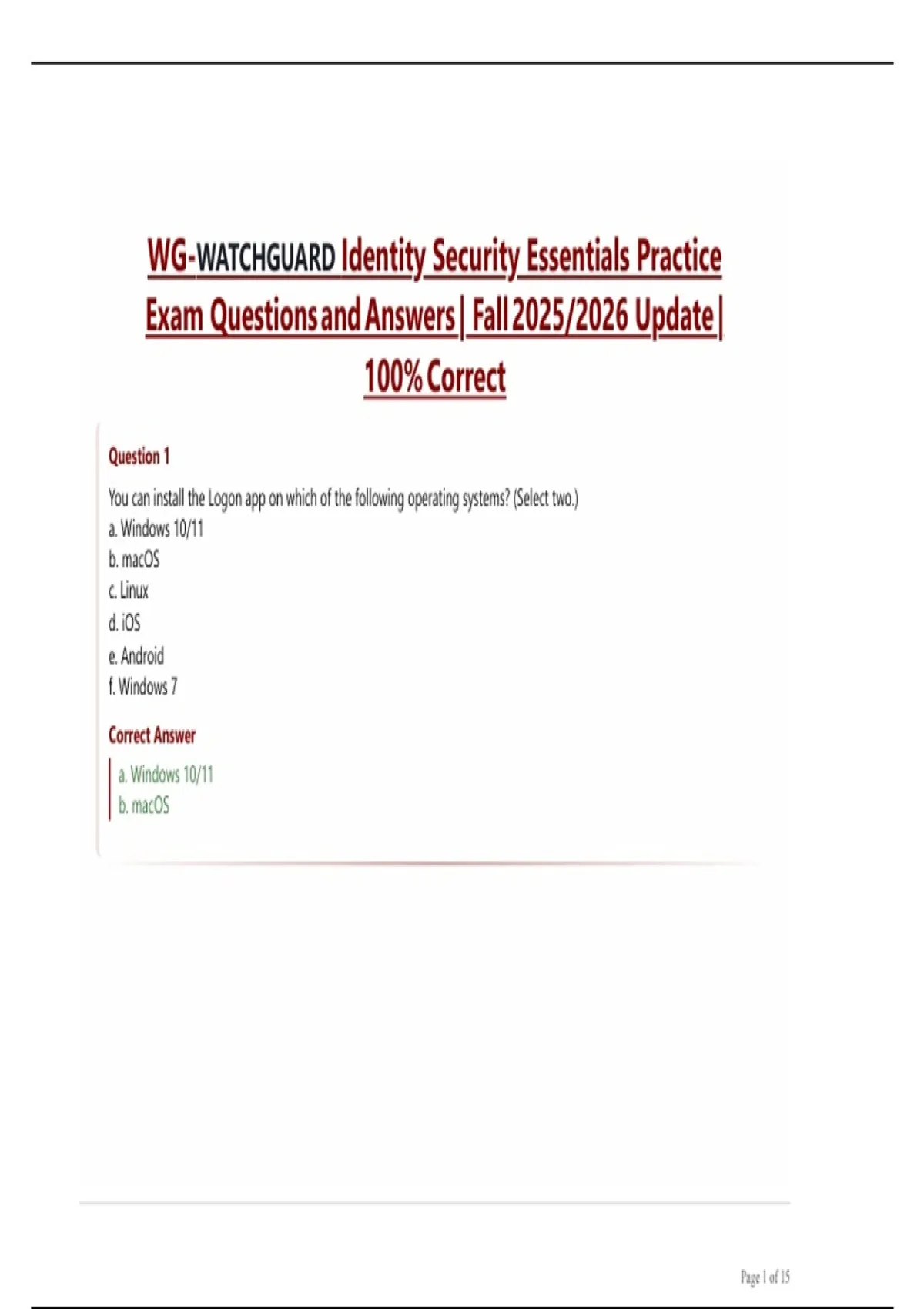WG-WATCHGUARD Identity Security Essentials Practice Exam Questions and Answers | Fall 2025/2026 Update | 100% Correct
