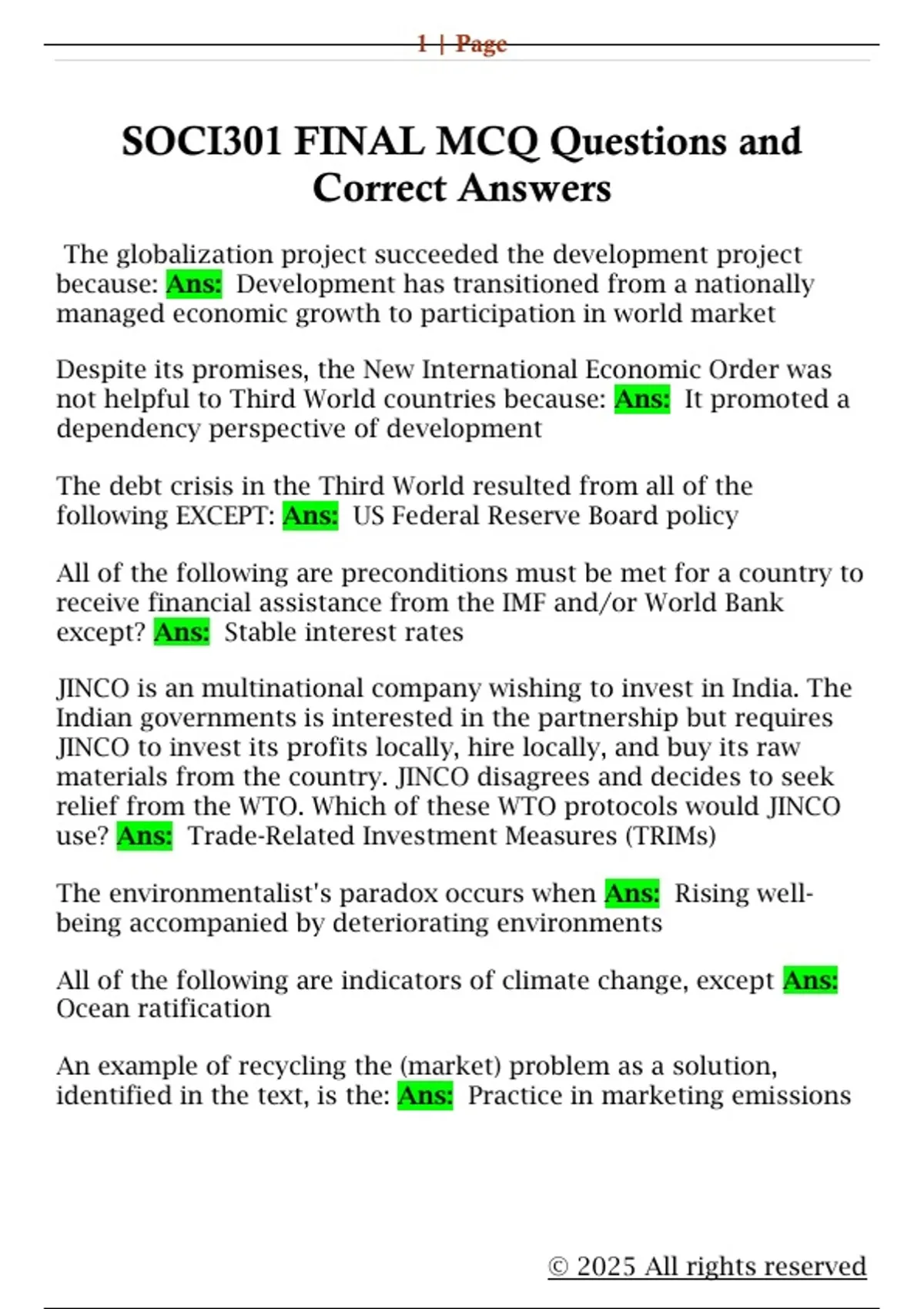 SOCI301 FINAL MCQ Questions and