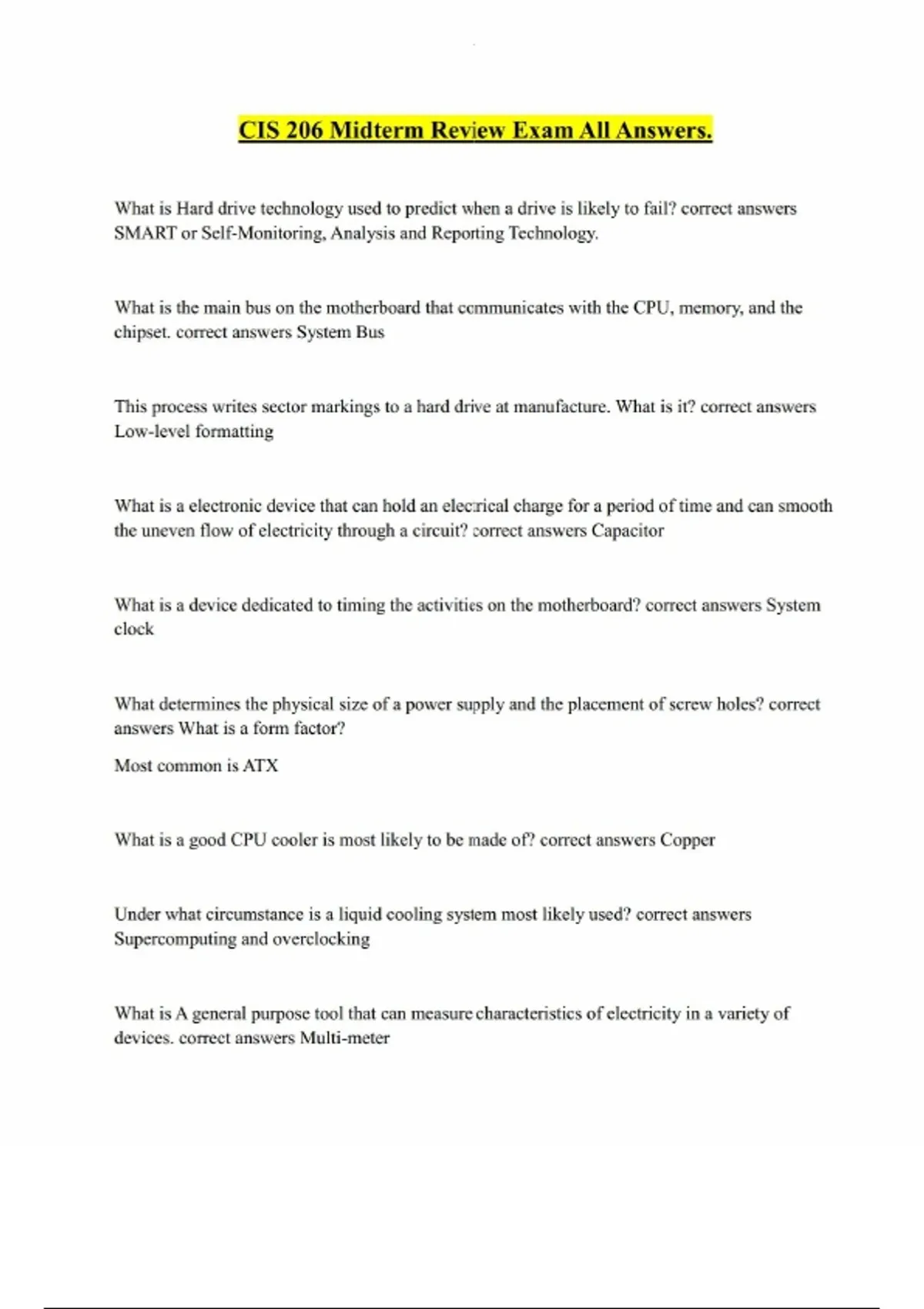 cis 206 midterm review exam all answers
