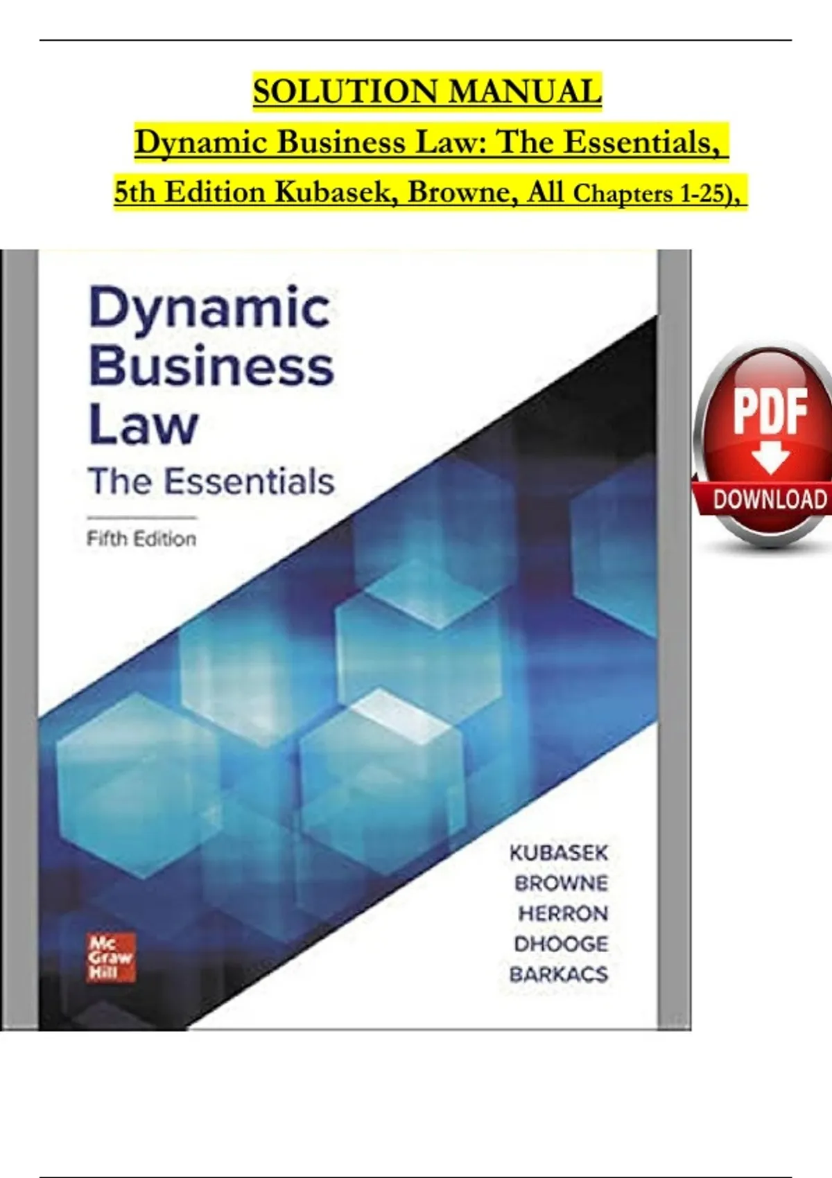 **** INSTANT DOWNLOAD FOR ****Solution manual for dynamic business law the essentials 5th edition by nancy kubasek