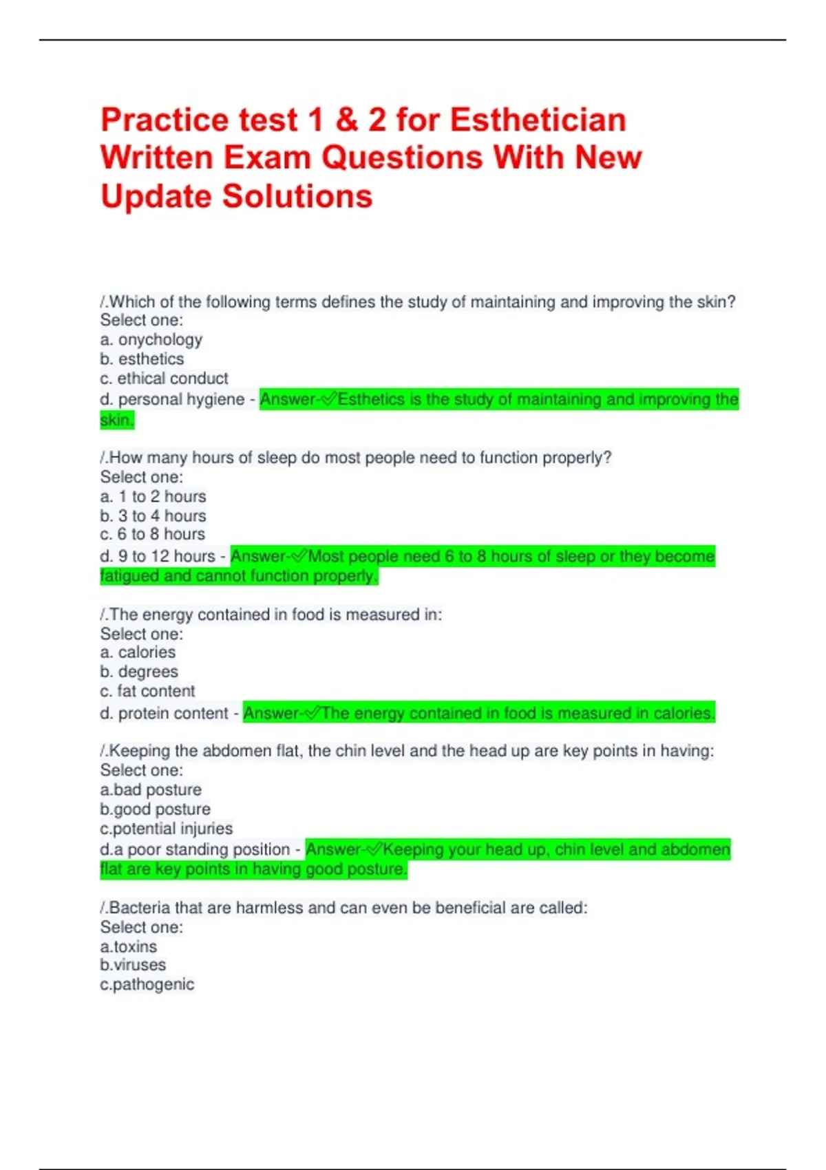 d. personal hygiene - Answer-✅Esthetics is the study of maintaining and improving the