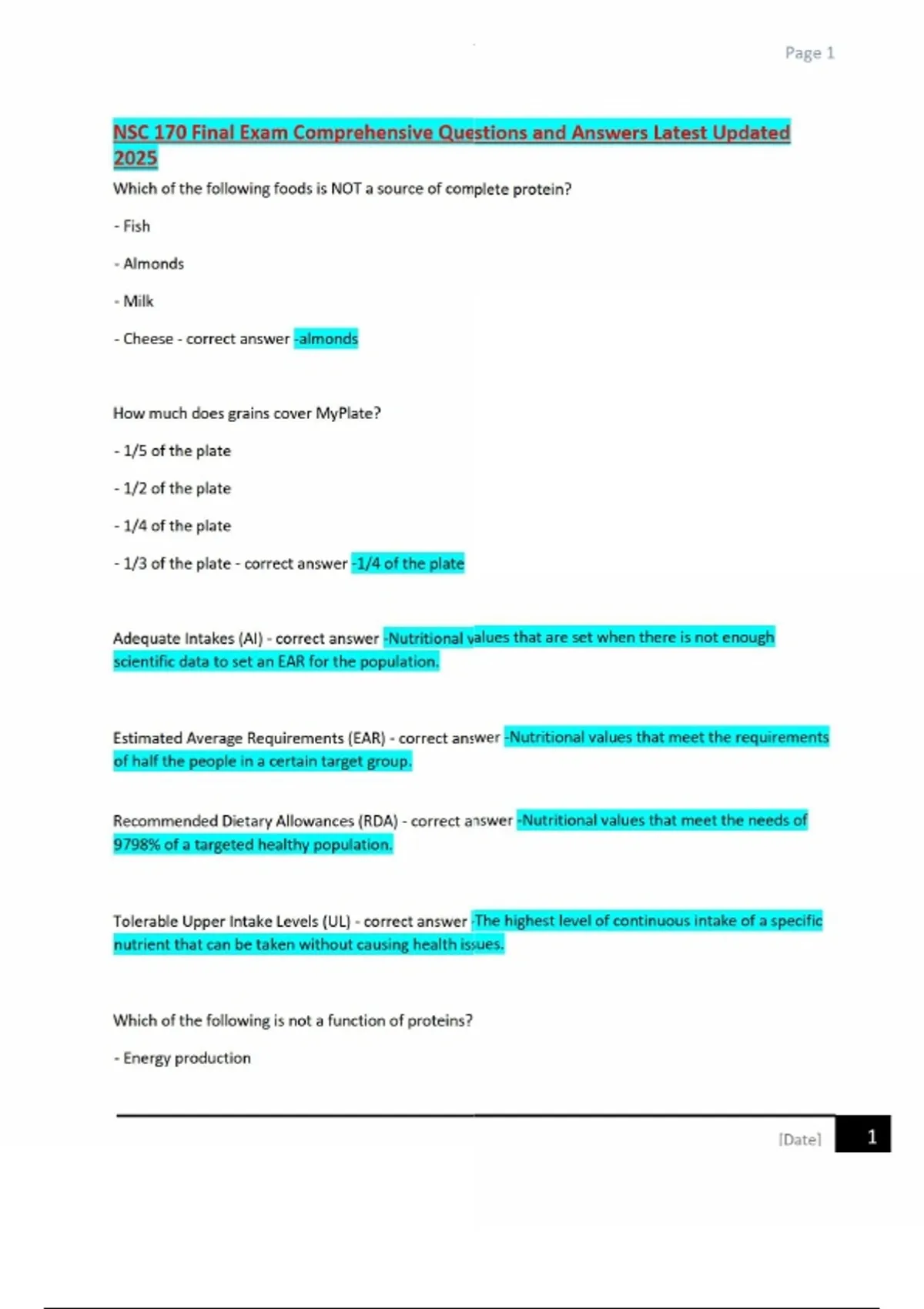 NSC 170 Final Exam Comprehensive Questions and Answers Latest Updated 2025 NSC 170 Final Exam Comprehensive Questions and Answers Latest Updated 2025