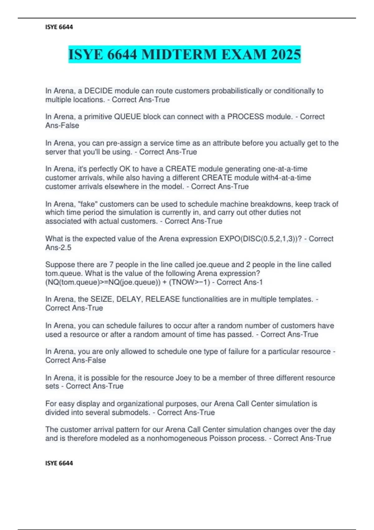 ISYE 6644 MIDTERM EXAM 2025
