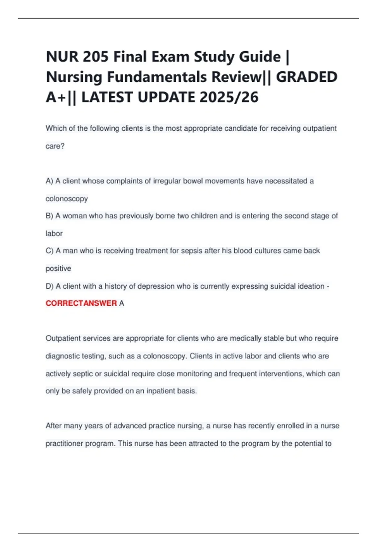 NUR 205 Final Exam Study Guide |