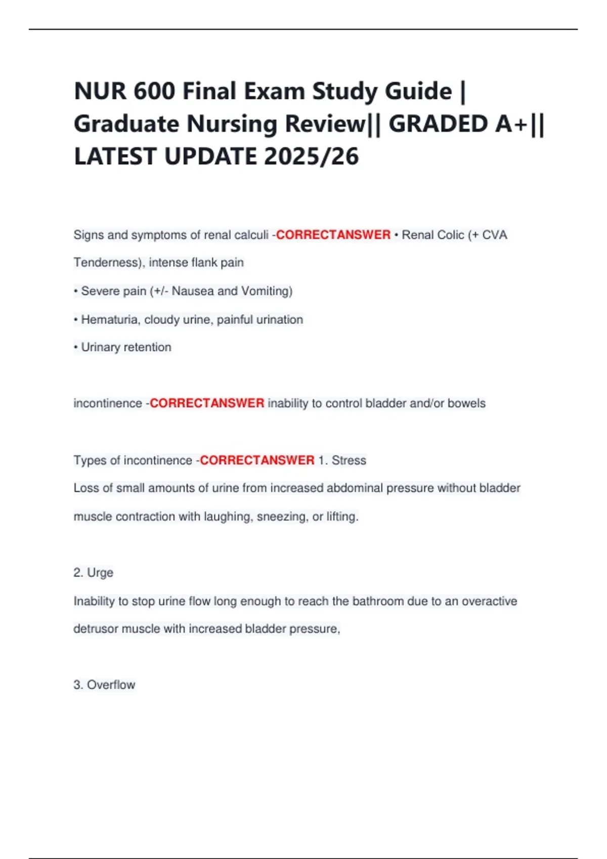 NUR 600 Final Exam Study Guide | Graduate Nursing Review|| GRADED A+|| LATEST UPDATE 2025/26